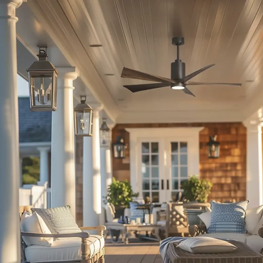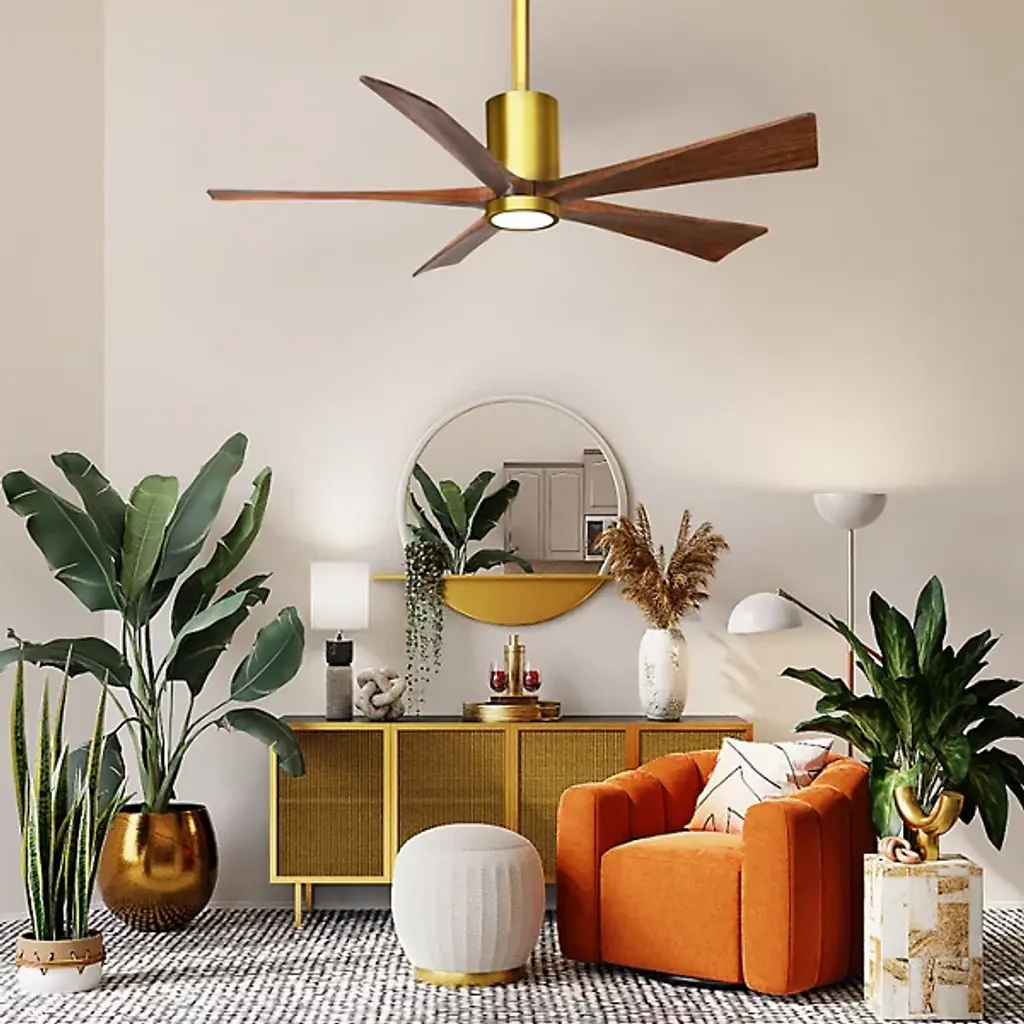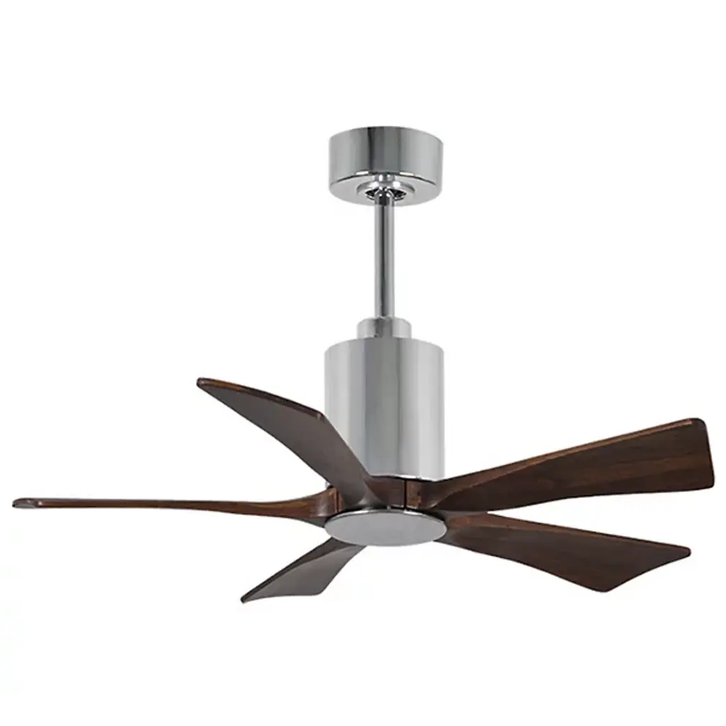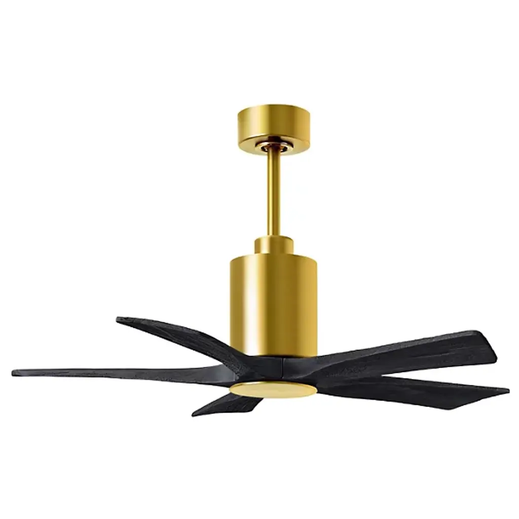 The Atlas by Matthews Fan Co. Patricia 5-Blade LED Ceiling Fan offers a sleek, industrial upgrade to your indoor or outdoor space. Made from machined aluminum and heavy stamped steel, the Patricia 5-Blade LED Ceiling Fan features five machine-cut, solid wood blades which revolve around an ultra-quiet DC motor. The Patricia 5-Blade LED Ceiling Fan includes an LED light kit and optional light cap. For covered, damp locations only.