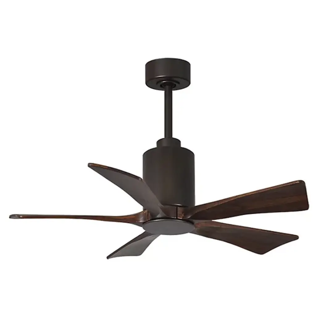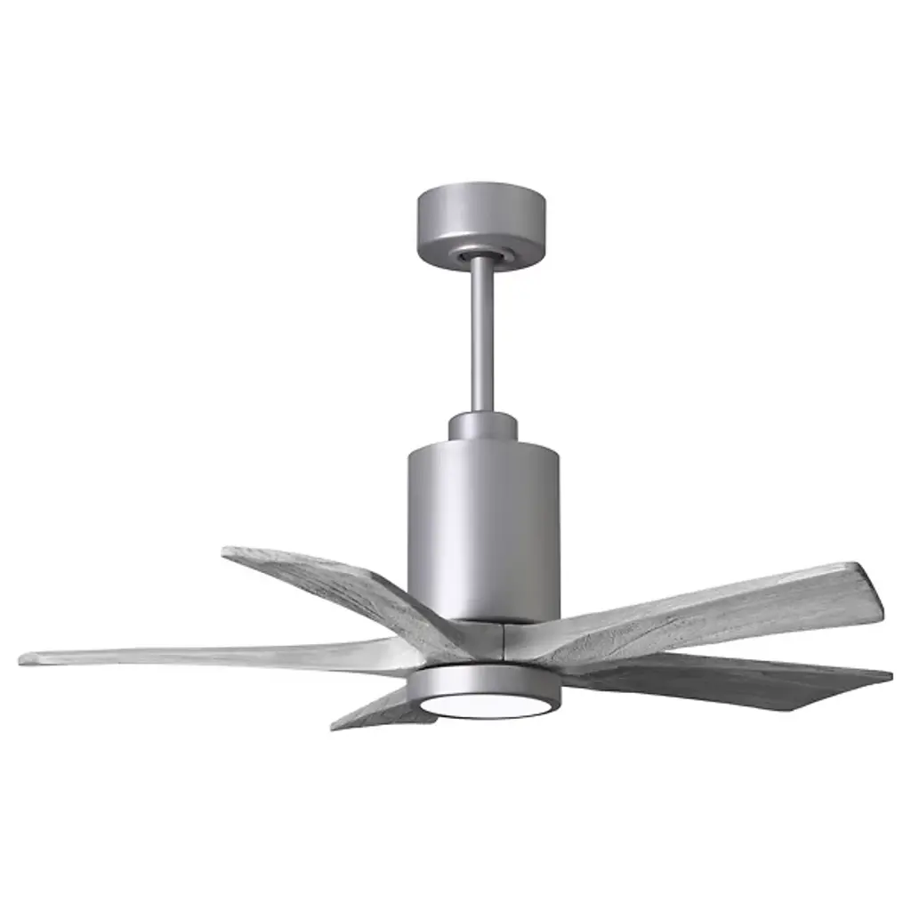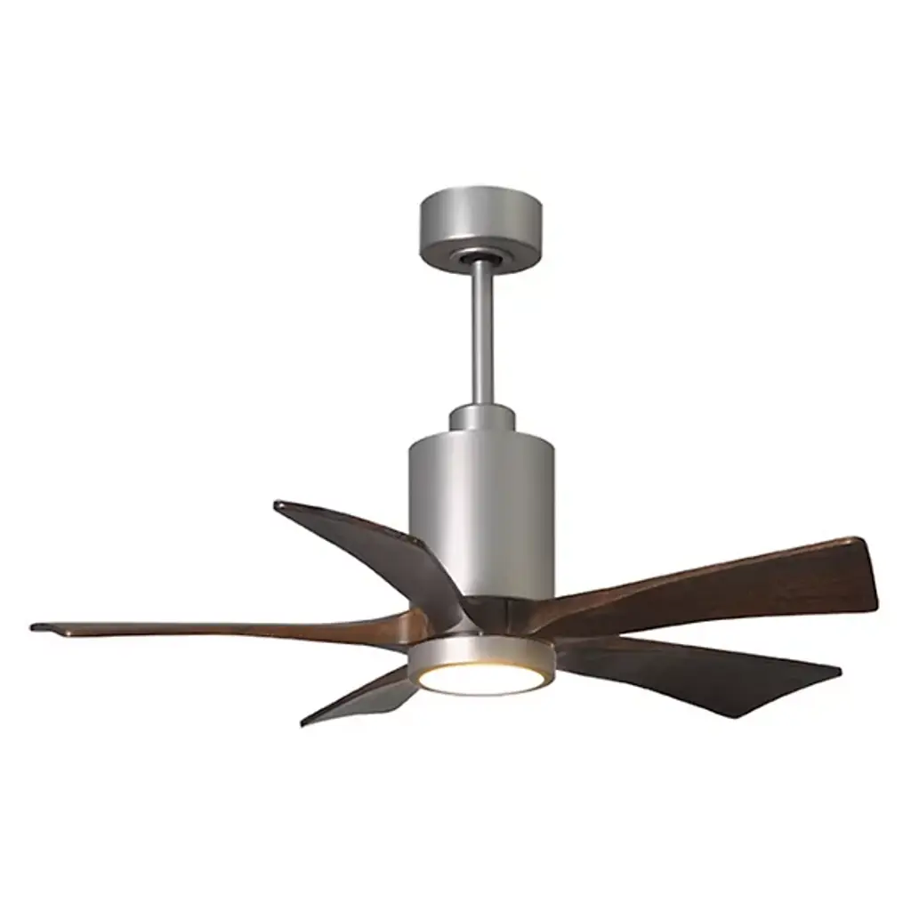 The Atlas by Matthews Fan Co. Patricia 5-Blade LED Ceiling Fan offers a sleek, industrial upgrade to your indoor or outdoor space. Made from machined aluminum and heavy stamped steel, the Patricia 5-Blade LED Ceiling Fan features five machine-cut, solid wood blades which revolve around an ultra-quiet DC motor. The Patricia 5-Blade LED Ceiling Fan includes an LED light kit and optional light cap. For covered, damp locations only.