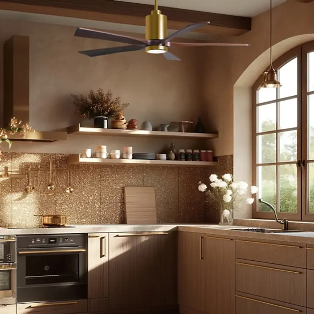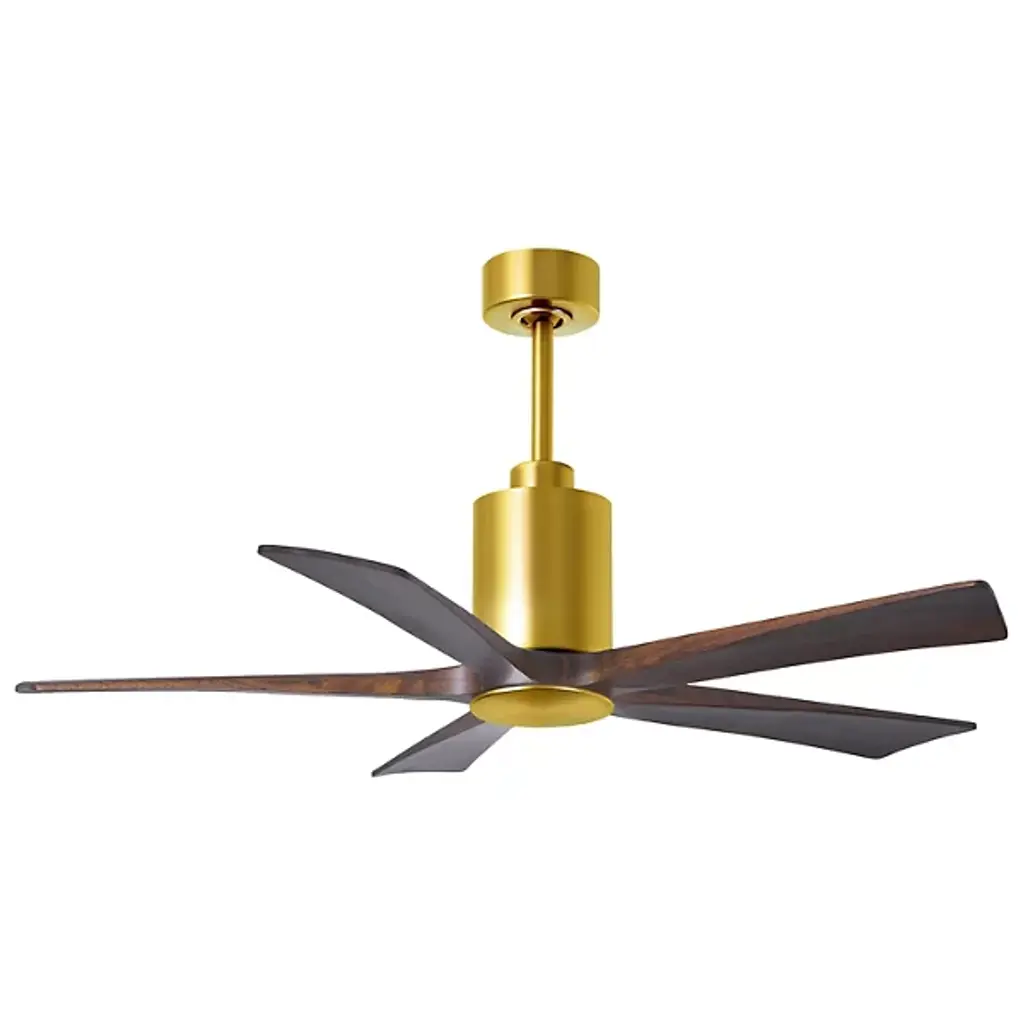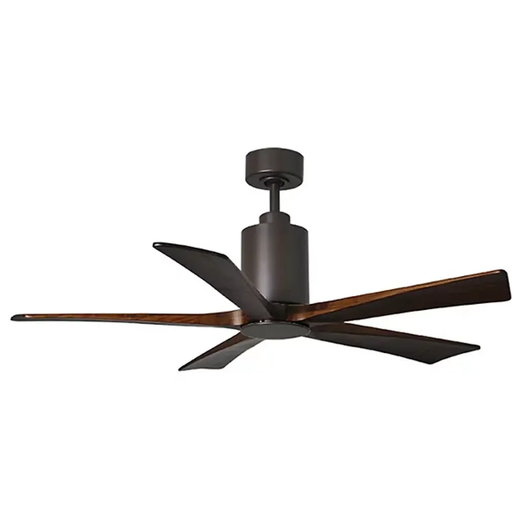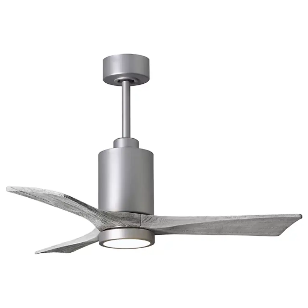 The Atlas by Matthews Fan Co. Patricia 5-Blade LED Ceiling Fan offers a sleek, industrial upgrade to your indoor or outdoor space. Made from machined aluminum and heavy stamped steel, the Patricia 5-Blade LED Ceiling Fan features five machine-cut, solid wood blades which revolve around an ultra-quiet DC motor. The Patricia 5-Blade LED Ceiling Fan includes an LED light kit and optional light cap. For covered, damp locations only.