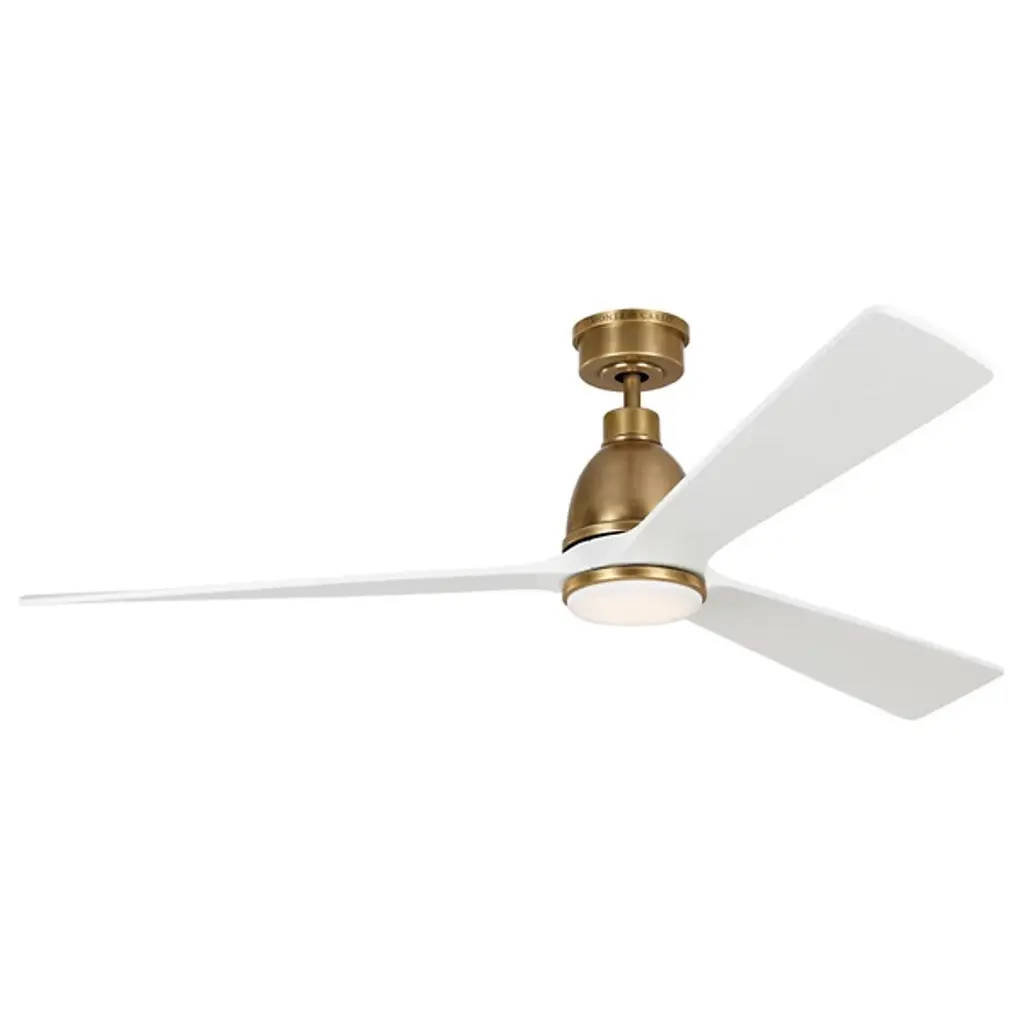 The Peel Smart LED Ceiling Fan from Visual Comfort Fan adds a refreshing breeze and even ambiance to interiors. Three slim blades bloom out around the LED lamping like petals, able to swirl at six speeds while the central lamping adds a layer of warmth to the sides. The fixture is designed by Peter Bristol, with a focus on simple design elements and solid functionality, while a damp rating means it can occupy any indoor or covered outdoor spaces.