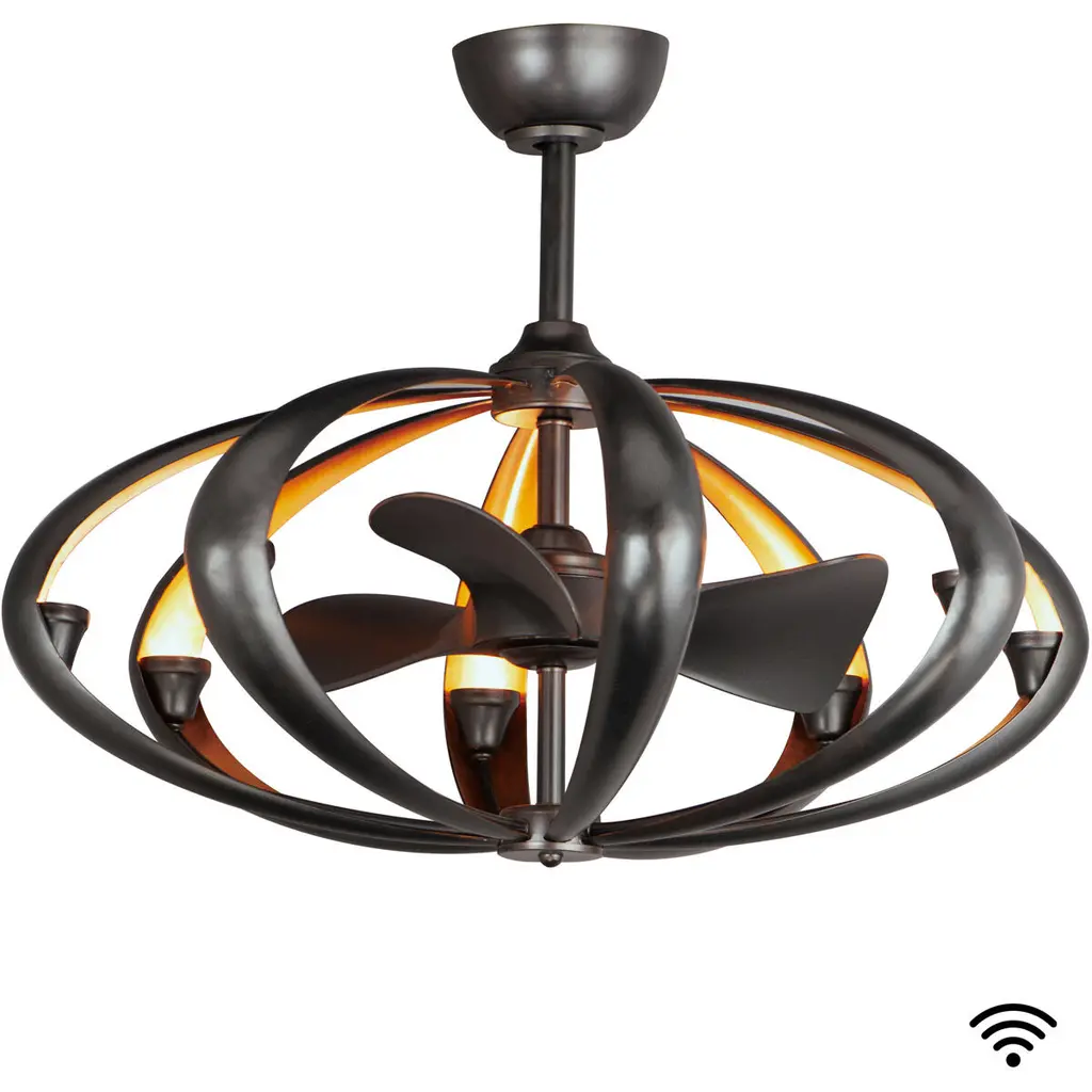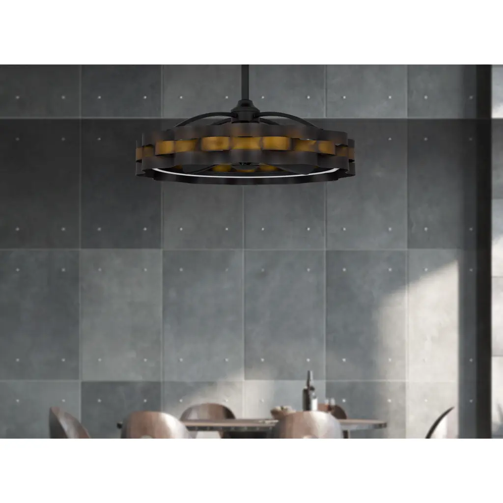Add a stylish contemporary piece to your ceiling with this antique dark bronze drum style ceiling fan. It features an ultra quiet 6 speed motor and remote controlled led lights. ABS fan blades provide updraft and downdraft fan direction.