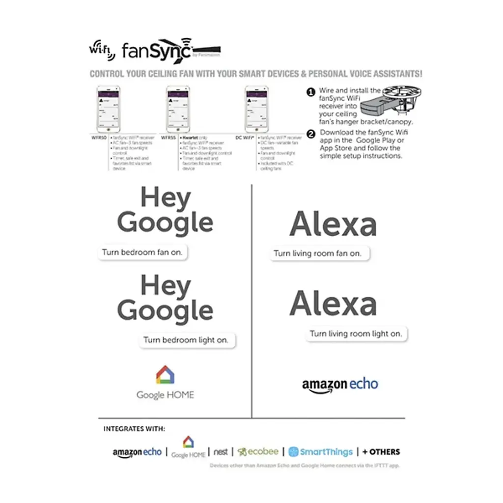 The Pendry Ceiling Fan from Fanimation Fans impresses with its elegant housing and multiple blades, offering a sleek and refined look. Made from composite materials, it features a frosted opal glass shade that softly diffuses light, with three selectable color temperatures. Integrated WiFi compatibility allows easy control with most smart home systems. Additional features include a sleep timer, home away mode, and fresh air mode, all facilitated by Kwikwire technology for straightforward installation.