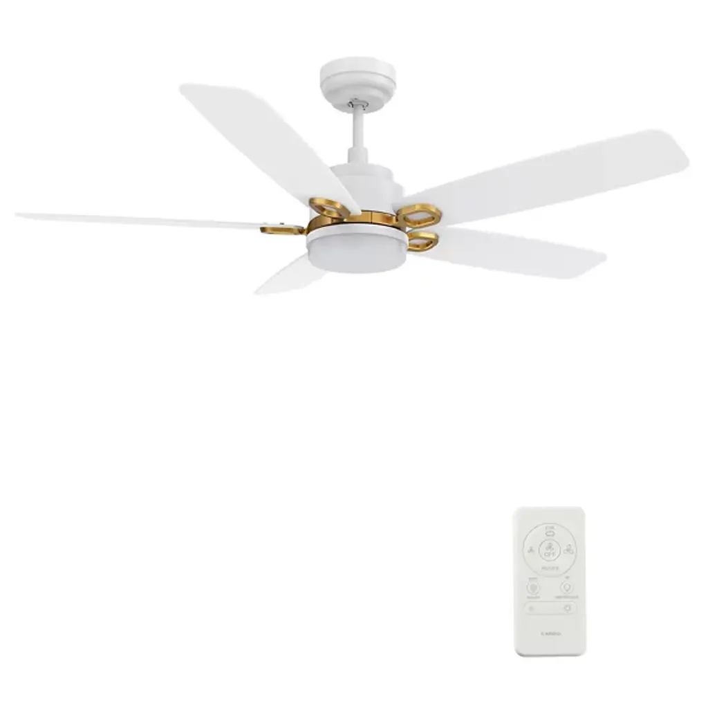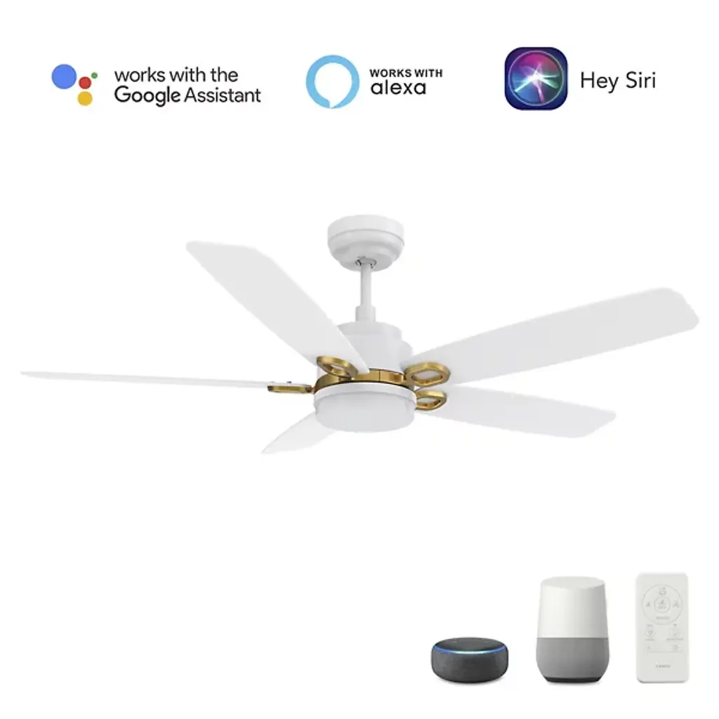 The Peyton Smart LED Ceiling Fan from Carro USA adds a casual modern style to its surroundings. A contoured circular canopy keeps the fixture in place, sending down a short downrod to a stepped, cylindrical housing that seats a silent DC motor above expressive, energy-friendly LED lamping positioned beneath a disc-style diffuser. The fan activates at the tap of a compatible app or with the included remote control, shedding a gentle, customizable glow or spinning up a soothing breeze with ease.