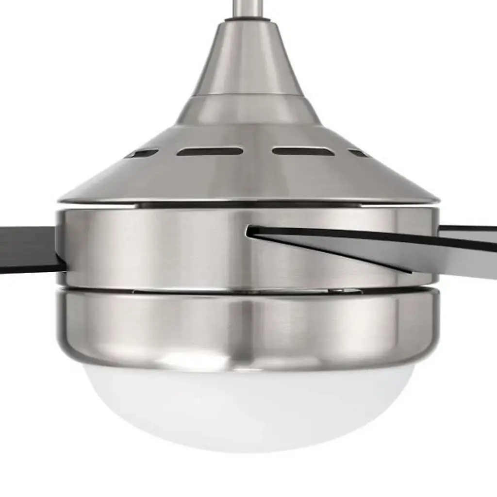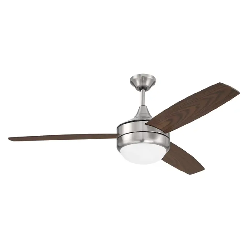 The Phaze II LED Ceiling Fan from Craftmade Fans is where contemporary design meets exceptional performance. Crafted with a blend of premium aluminum, steel, and MDF materials, this ceiling fan is sturdily built. Featuring reversible fan blades rotating at 4 speeds in forward and reverse, this fan offers versatile functionality, allowing you to adjust the airflow direction to suit your comfort needs. Equipped with a powerful DC motor, your fan provides easy operation, delivering optimal airflow. An acrylic shade glows brightly courtesy of an integrated LED that’s dimmable using an ELV dimmer.