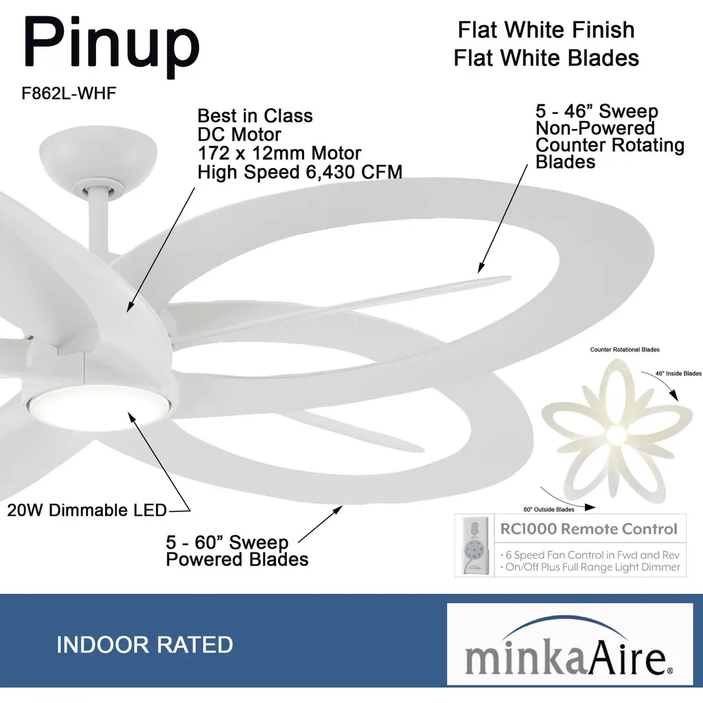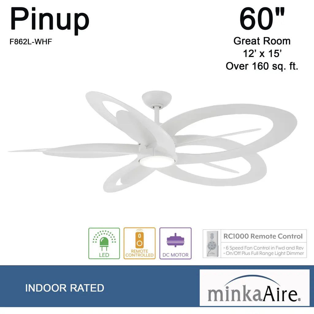 This 1 light Ceiling Fan from the Pinup collection by Minka-Aire will enhance your home with a perfect mix of form and function. The features include a Flat White finish applied by experts. This item qualifies for free shipping!
