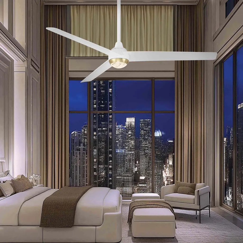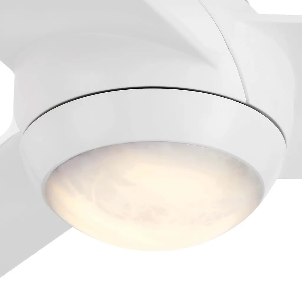 The Pisces Indoor/Outdoor Smart Ceiling Fan from Modern Forms showcases a natural Spanish Alabaster diffuser that emits a mesmerizing celestial glow. Its 54-inch three-blade design, driven by a quiet DC motor, delivers efficient and silent cooling. The integrated dimmable LED module offers customizable lighting to suit any mood. Available in Matte Black or Matte White, with optional Soft Brass accents, Pisces combines refined aesthetics with smart functionality, seamlessly connecting to your home ecosystem through the Modern Forms app for intuitive control. Highlights Remote Included