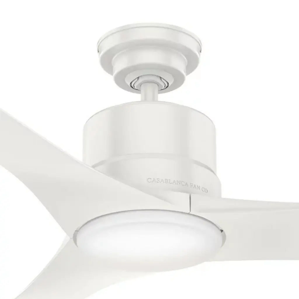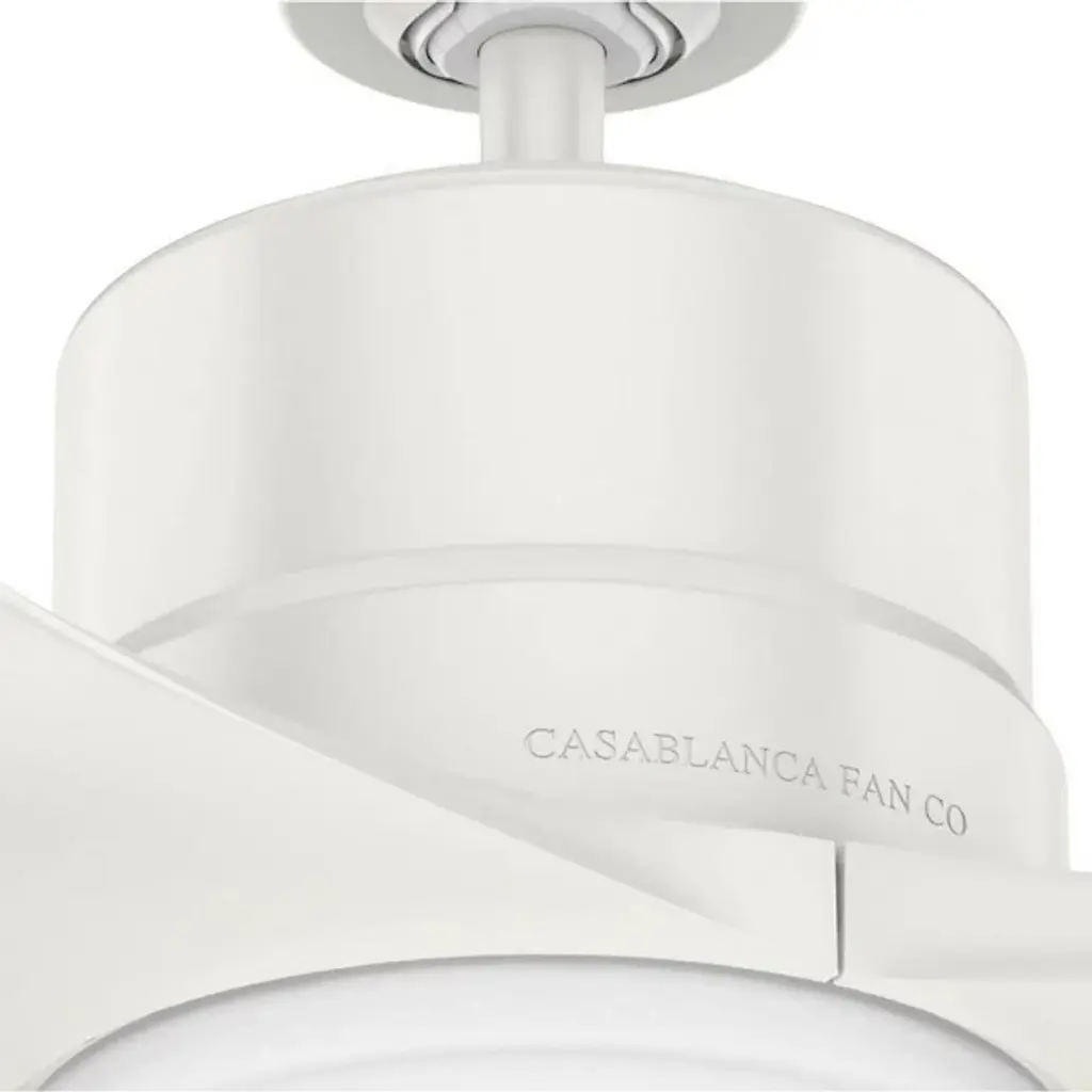 Add a smooth, industrial touch to the spaces in your modern home with the Piston Outdoor LED Ceiling Fan from Casablanca Fan Company. The blades are formed with a mid-century style and are precisely honed to resemble the pistons of old, large machinery. The stainless-steel hardware allows it to the blend with a range of styles and spaces, and the motor runs at four speeds and can reverse, guaranteeing airflow and comfort throughout the seasons. A rounded, painted white glass shade rests directly underneath the blades, containing an integrated LED that emits a bright and even layer of light. With a damp rating, this enticing and inviting piece can be placed indoors or outdoors, bringing its welcoming functionality to anywhere in your home.