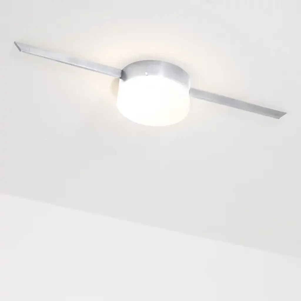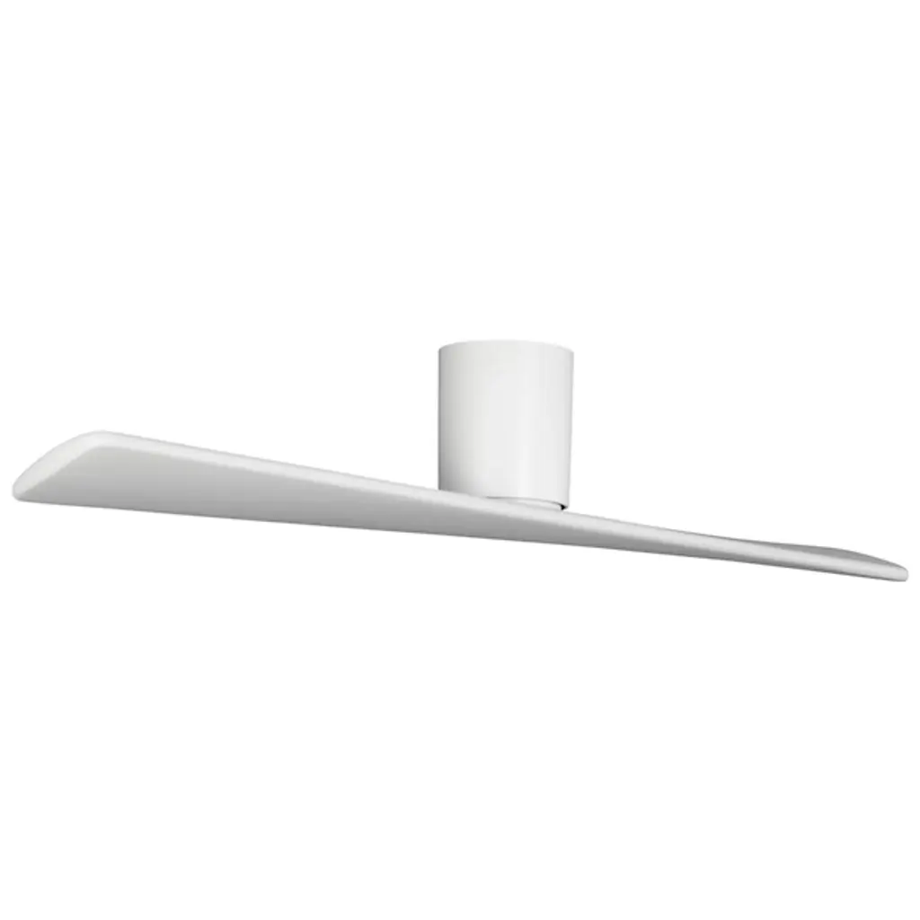 Embodying timeless minimalism, Peter Bristols Plank Smart 72" Hugger fan is named for its single balsawood plank, gently twisted to act as two blades. Emphasizing the pared-down aesthetic, the simple cylindrical motor housing mounts flush to the ceiling. Damp-rated for indoor and outdoor use, this app-controlled smart fan will add a bold yet understated accent to any space it adorns.