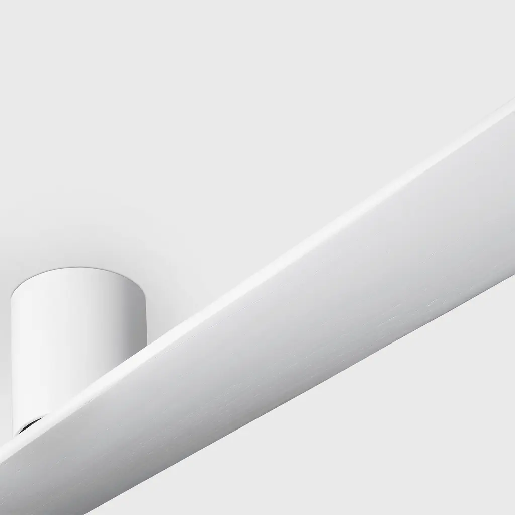 Embodying timeless minimalism, Peter Bristols Plank Smart 72" Hugger fan is named for its single balsawood plank, gently twisted to act as two blades. Emphasizing the pared-down aesthetic, the simple cylindrical motor housing mounts flush to the ceiling. Damp-rated for indoor and outdoor use, this app-controlled smart fan will add a bold yet understated accent to any space it adorns.