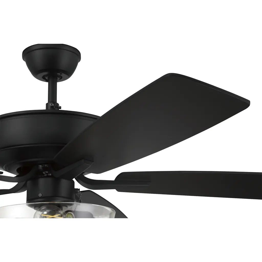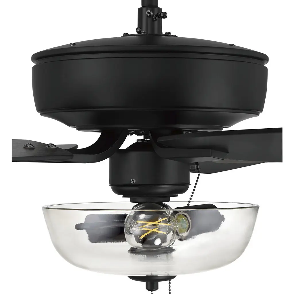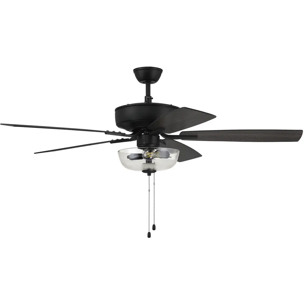 The ideal combination of excellent performance, exceptional value and timeless style, the NEW Craftmade Pro Plus 52" ceiling fan with clear glass bowl light with dimmable LED bulbs included featuring a clean motor, updated straight blade arms and canopy is built for performance. The dual mount, 3-speed, reversible fan includes custom 52" reversible blades. Optional 44" custom reversible blades and remote controls are available.