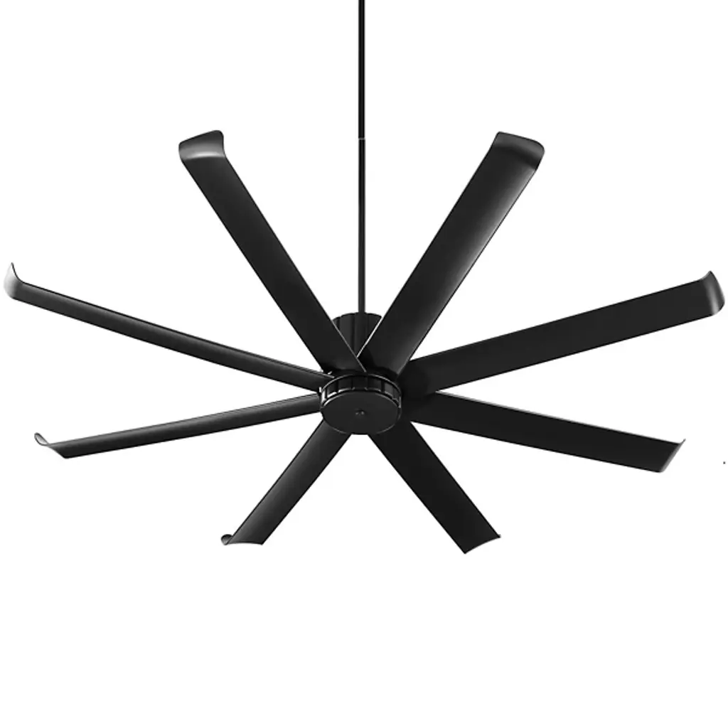 Cool your porch and patio spaces with the elegant designs and striking lines of the Proxima Patio Ceiling Fan from Quorum International. A sleek mix of contemporary class and simple minimalism, it starts with a slender, strong downrod, seating a powerful fan motor inside a cylindrical motor housing with vertical accents. This motor powers eight slender blades with curved-up wingtips that whirl into ceaseless motion, easily able to convey a calming breeze in all directions.