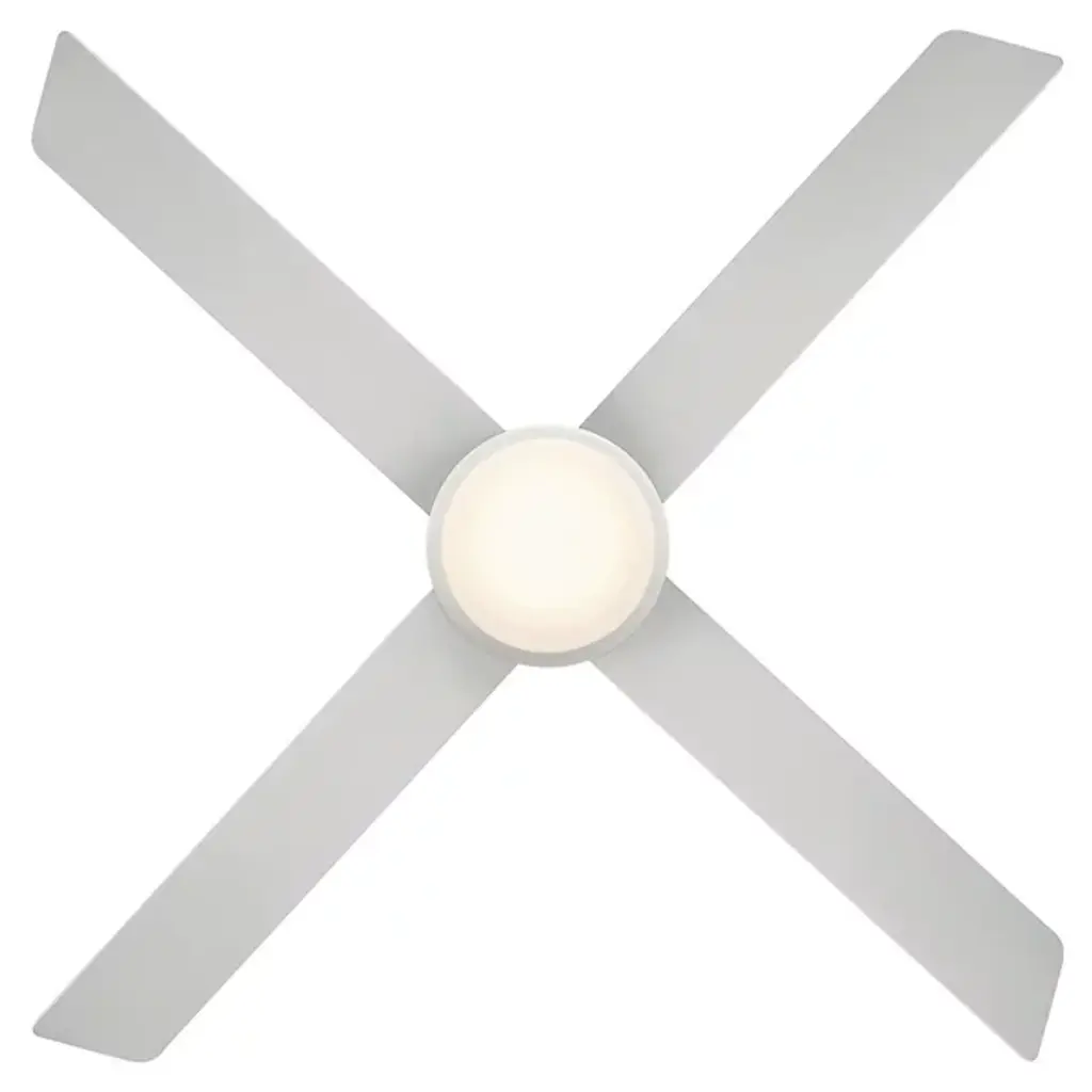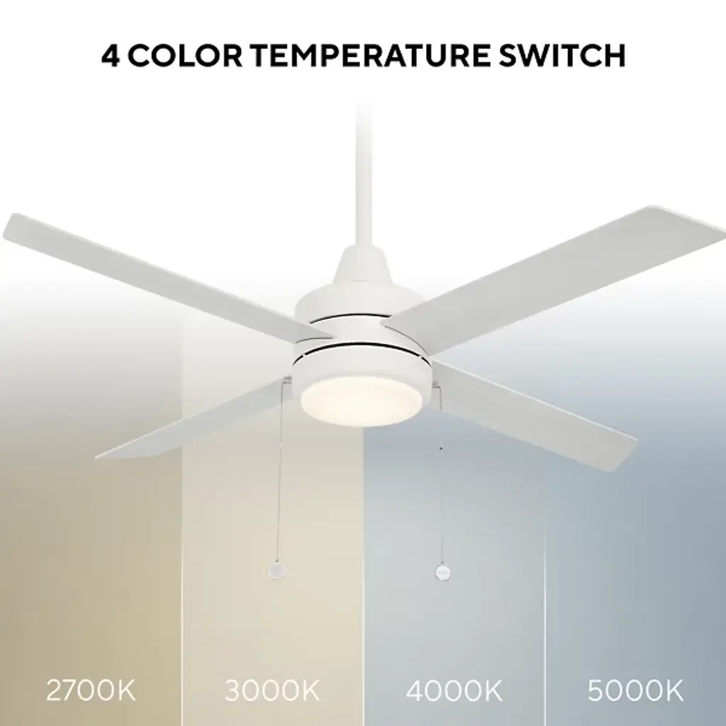 The Quade Smart CCT LED Ceiling Fan from WAC Lighting is a high-value, four-blade fan designed for both performance and style. Damp-rated for use in covered outdoor or indoor spaces, it features three speed settings and a reversible function operated from the housing—ideal for circulating warm air during colder months. Its gently curved blades add a refined touch, enhancing any interior with a sleek, modern aesthetic while ensuring year-round comfort and energy efficiency.