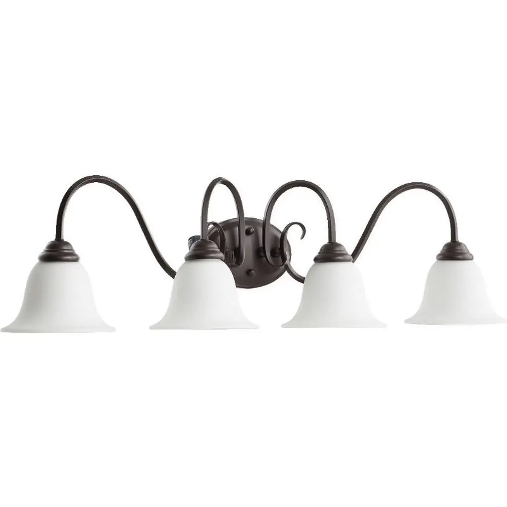 Introducing the Bryant Collection by Quorum Lighting. This stunning fixture features an elegant Oiled Bronze finish, adding a touch of sophistication to any space. With a width of 31.5", height of 11.25", and depth of 7.5", it is the perfect size for various rooms. The Bryant Collection includes 4 bulbs with a wattage of 100 Watts, providing ample lighting. Although not dimmable, this fixture is damp rated, making it suitable for use in bathrooms or other moisture-prone areas. The shade is included, completing the overall look of this beautiful piece. Trust Quorum Lighting, a reputable manufacturer, to deliver exceptional quality and style.