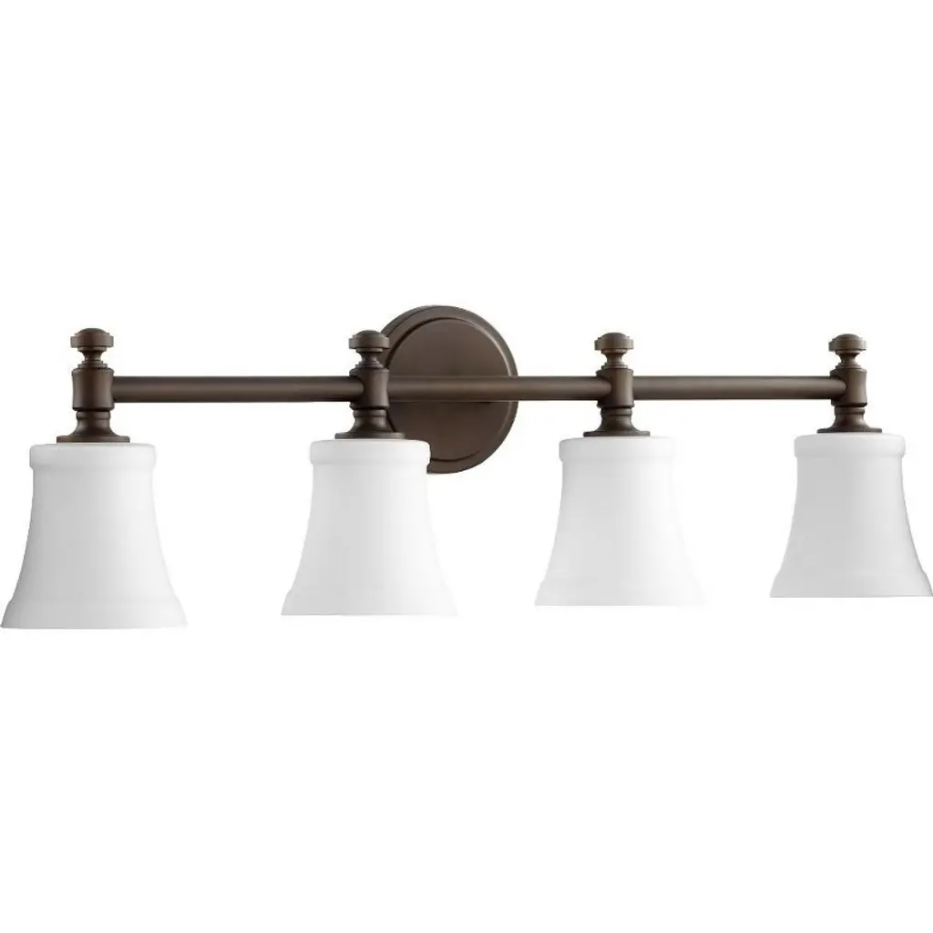 Introducing the Rossington Collection by Quorum Lighting. Crafted with high-quality glass and finished in a stunning oiled bronze, this fixture exudes elegance and sophistication. With a width of 21.5" and a height of 9", it is the perfect size to make a statement in any room. The depth of 6" ensures a sleek and streamlined look. Featuring three bulbs with a wattage of 100 watts each, this fixture provides ample lighting for any space. Although not dimmable, the Rossington Collection is damp rated, making it suitable for use in bathrooms or other moisture-prone areas. The shade is included, adding an extra touch of style. Elevate your home decor with this exquisite lighting solution from Quorum Lighting.