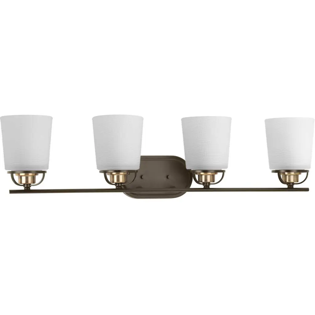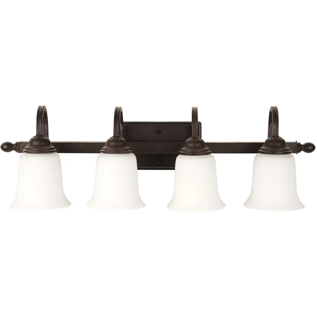 Introducing the Rossington Collection by Quorum Lighting. Crafted with high-quality glass and finished in a stunning oiled bronze color, this 30" wide, 9" tall, and 6" deep fixture is a perfect addition to any space. With 4 bulbs and a wattage of 100 Watts, it provides ample lighting. The shade is included, adding a touch of elegance. Although not dimmable, this damp rated fixture is suitable for various environments. Trust Quorum Lighting for exceptional quality and style.