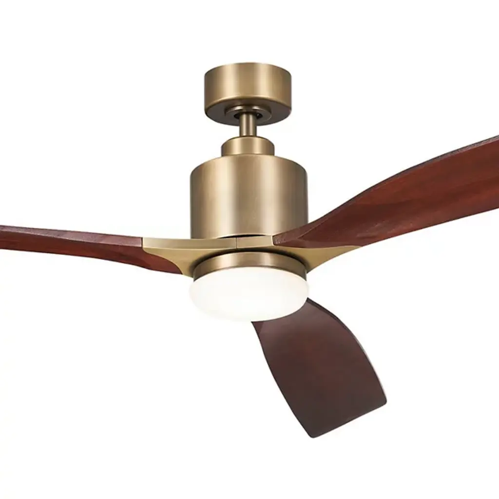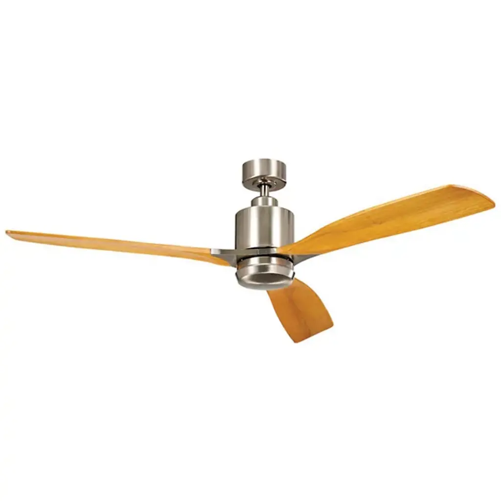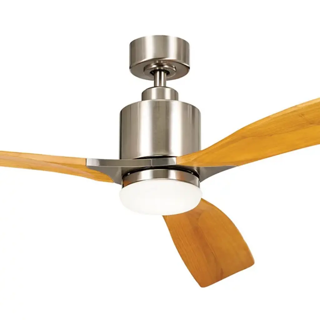 Showcasing a clean contrast of sleek metal and solid wood, the Kichler Ridley II LED Ceiling Fan brings a stylish blend of modern and rustic to your interior space. Made from pure steel, the Ridley II Ceiling Fan houses a powerful 3-speed AC motor and robust canopy for presence and durability. Features an integrated light kit for downlight use where needed. Includes a wall control with purchase and a metal light cap for non-light use. Remote optional.