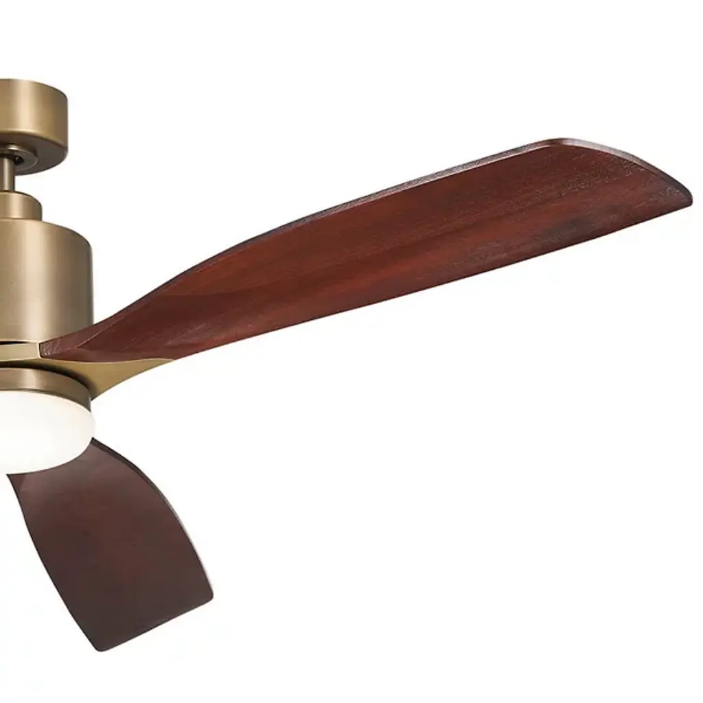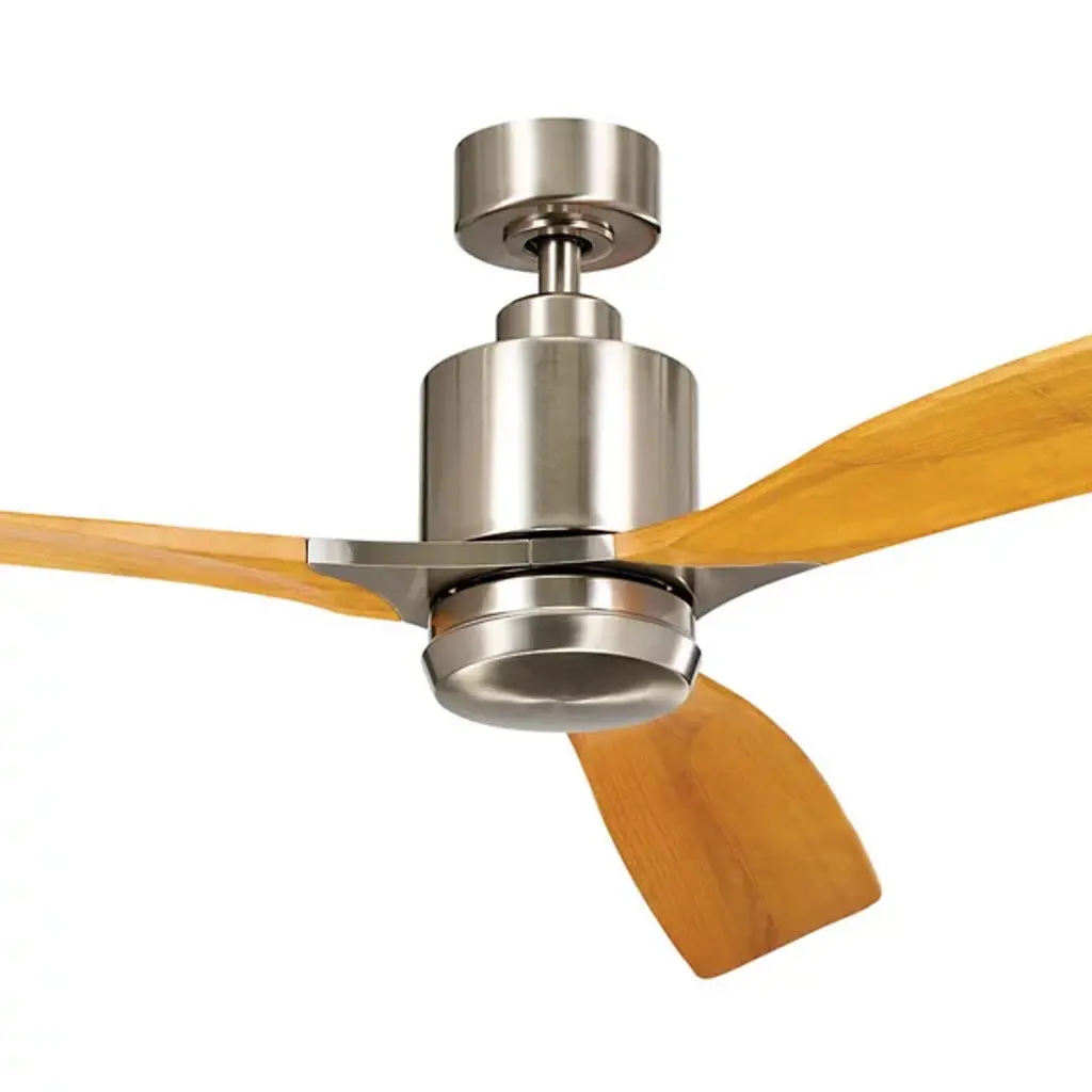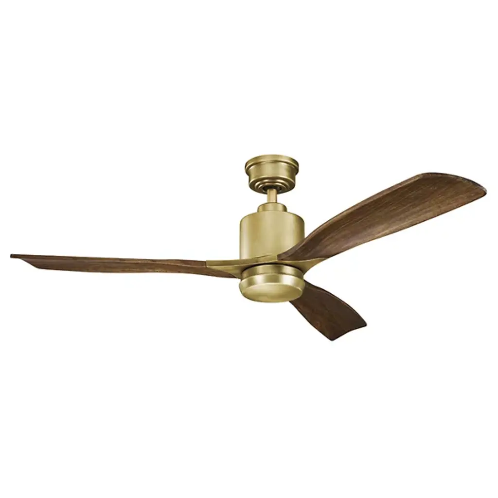 Showcasing a clean contrast of sleek metal and solid wood, the Kichler Ridley II LED Ceiling Fan brings a stylish blend of modern and rustic to your interior space. Made from pure steel, the Ridley II Ceiling Fan houses a powerful 3-speed AC motor and robust canopy for presence and durability. Features an integrated light kit for downlight use where needed. Includes a wall control with purchase and a metal light cap for non-light use. Remote optional.