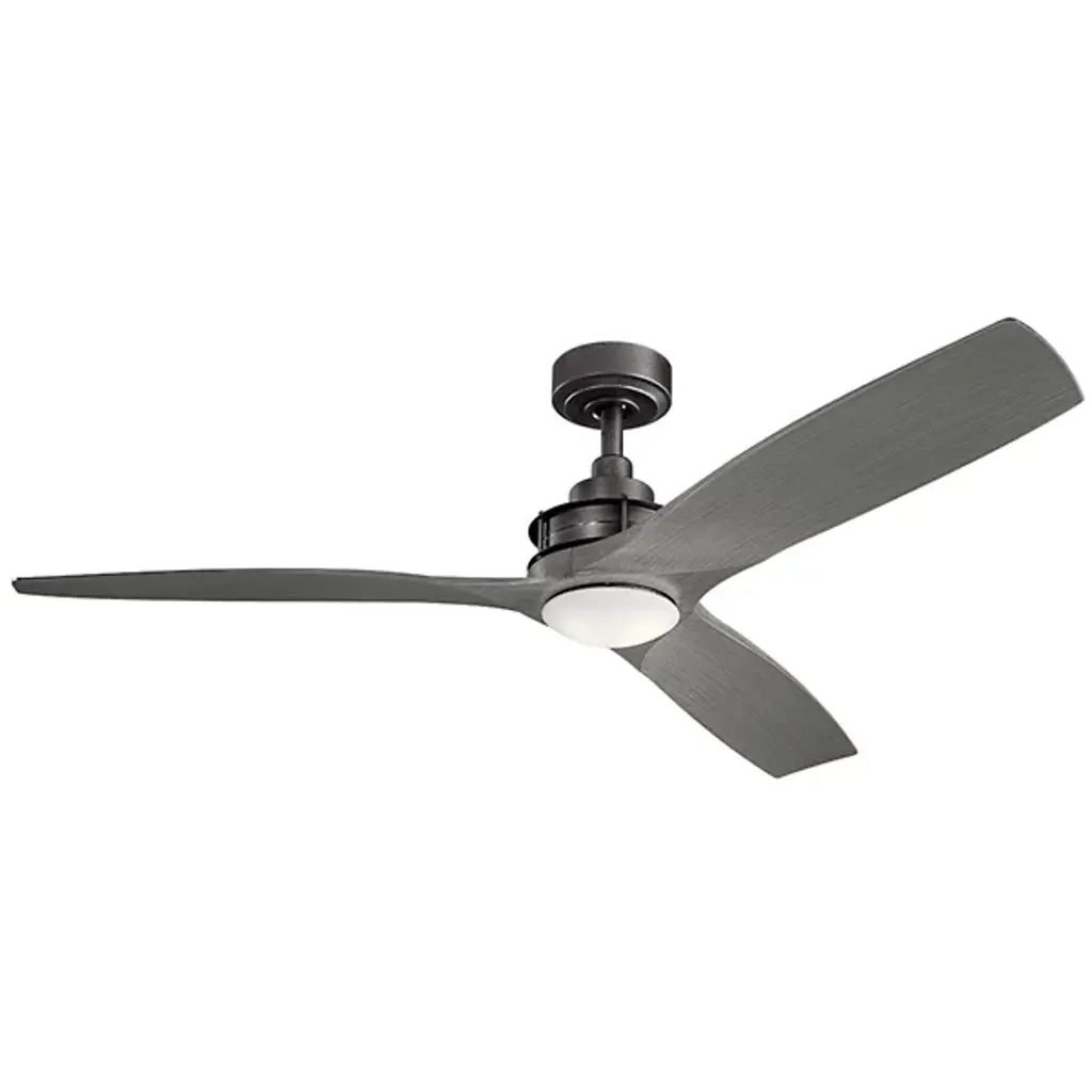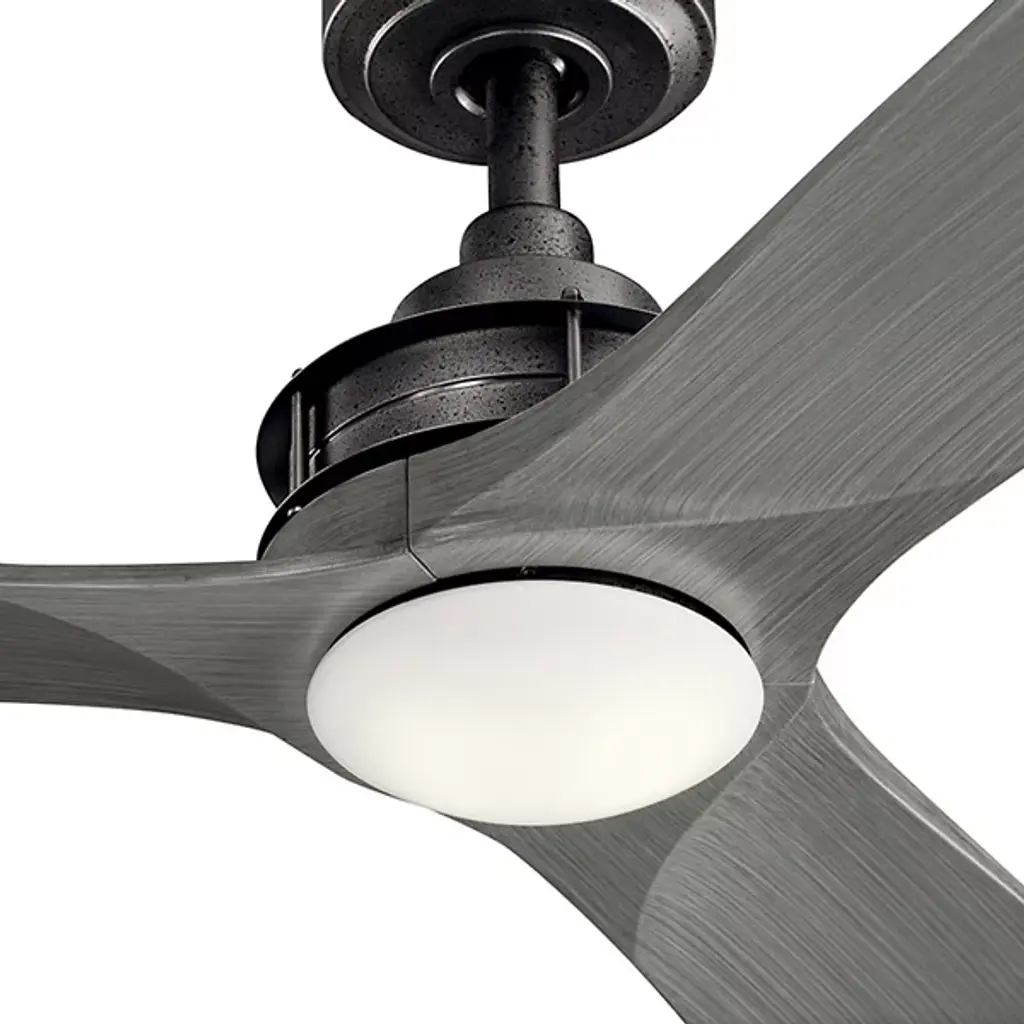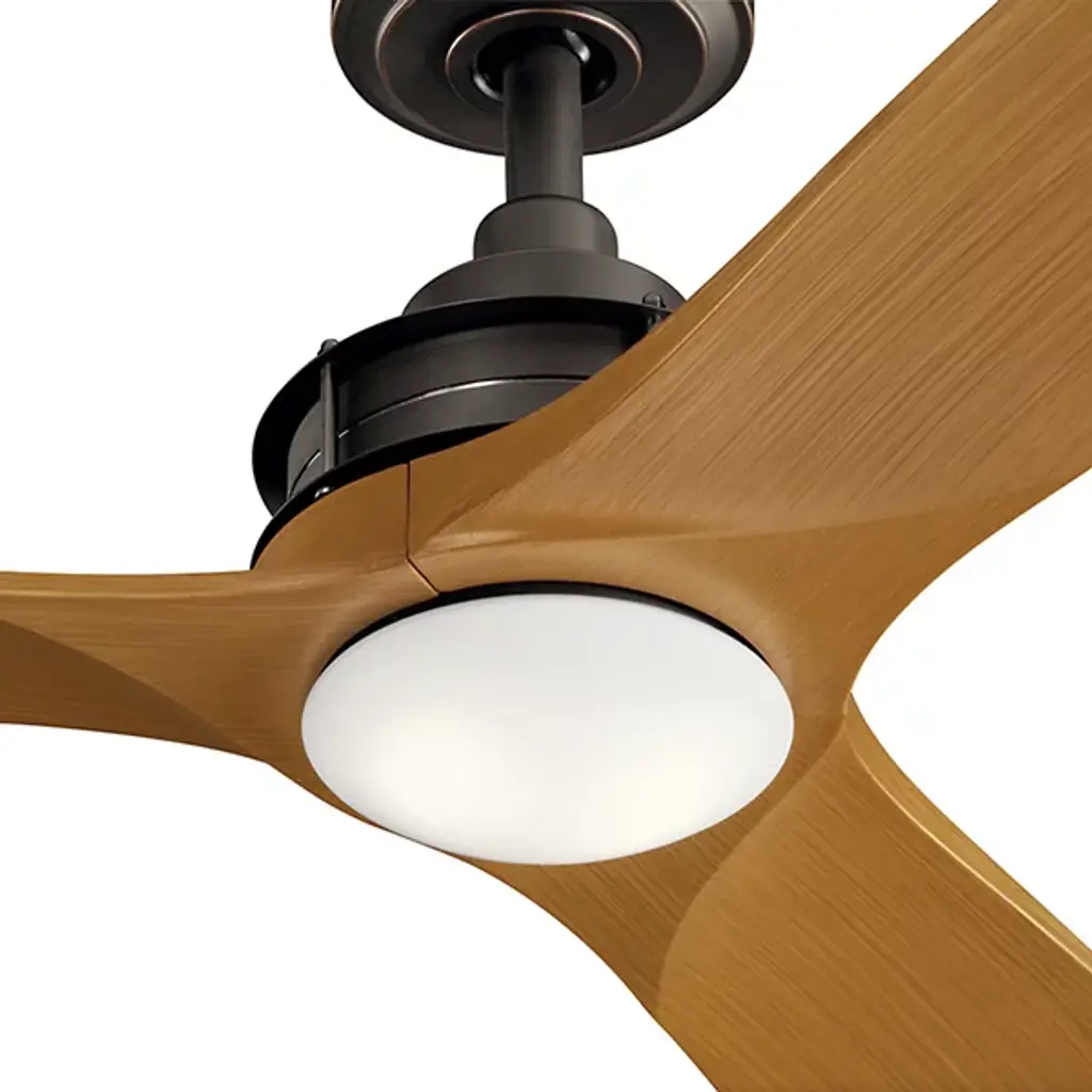 Sporting wooden tones that call to mind a very chic and rustic aesthetic, the Ried 56" Ceiling Fan by Kichler provides sweeping airflow while retaining a minimal form factor. The fan utilizes 3 blades, decked out in a wooden-tone, at a blade pitch of 12 degrees, to reach a humble 56-inch diameter. The blades are powered by an AC motor, allowing the fan to have 3 different set speeds which can be toggled through with the system’s wall control system. The fan is perfectly adequate for use in kitchens, living rooms, and bedrooms.