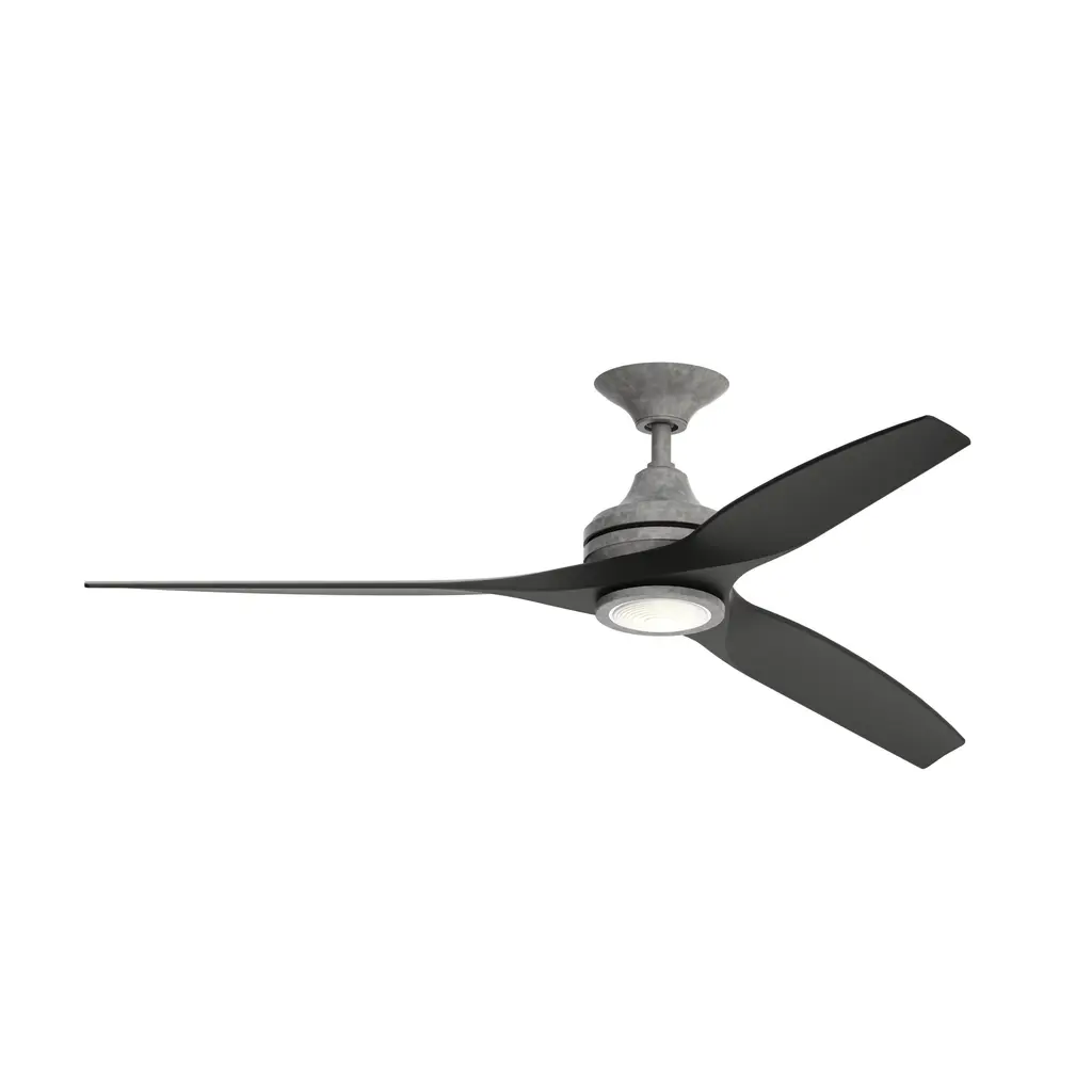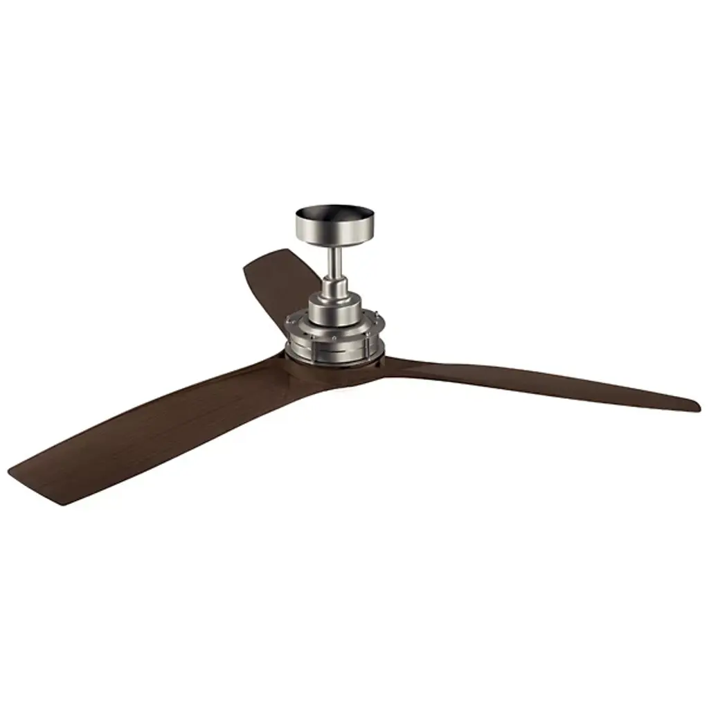 Sporting wooden tones that call to mind a very chic and rustic aesthetic, the Ried 56" Ceiling Fan by Kichler provides sweeping airflow while retaining a minimal form factor. The fan utilizes 3 blades, decked out in a wooden-tone, at a blade pitch of 12 degrees, to reach a humble 56-inch diameter. The blades are powered by an AC motor, allowing the fan to have 3 different set speeds which can be toggled through with the system’s wall control system. The fan is perfectly adequate for use in kitchens, living rooms, and bedrooms.