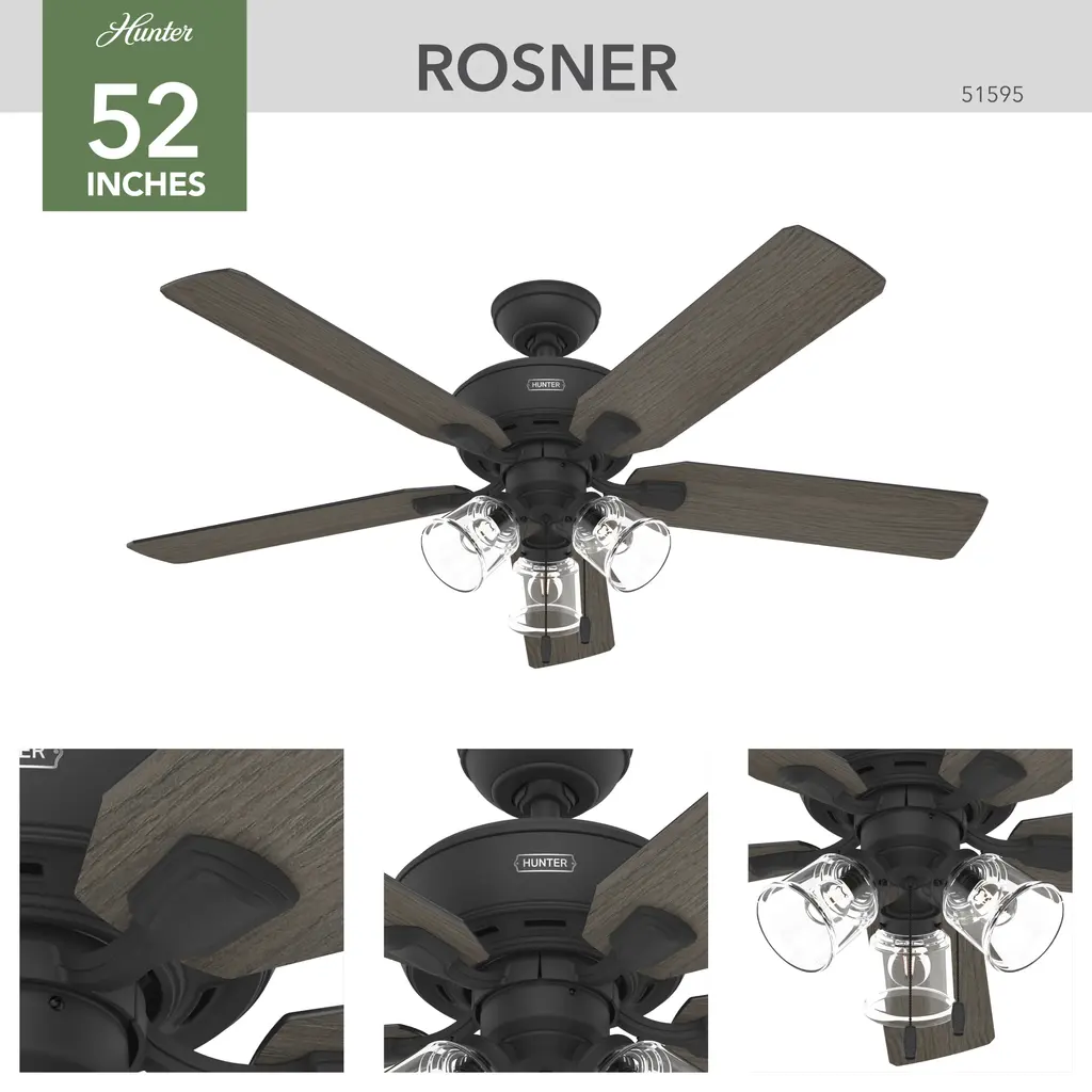 Rosner 52 Inch Matte Black With Greyed Walnut/salted Black Blades Ceiling Fan