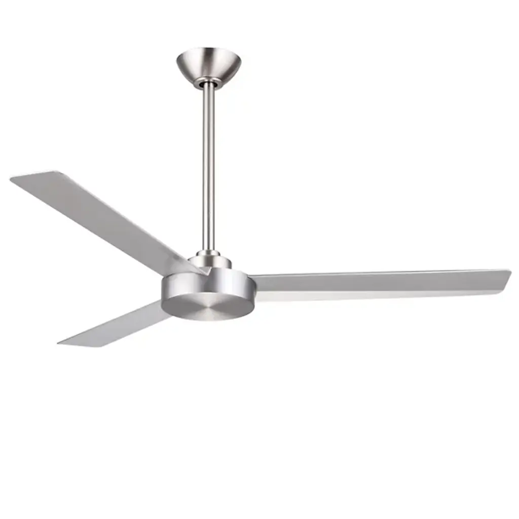 The Roto LED Ceiling Fan from Minka Aire Fans presents a large and in-charge mixture of contemporary and ultra-modern design elements. A 3-blade configuration with a wide wingspan extends from a cylinder-shaped motor and light housing sheathed in smooth metal and suspended from a long, slender stem. The fan combines a metal body with ABS blades and a white etched glass shade below energy-efficient LED lamping that casts ample ambiance below. Efficient air circulation is guaranteed by the aggressive 22-degree blade pitch and an AC motor, while the LED has a lifespan of 50,000 hours, ensuring long-lasting performance in any modern space.