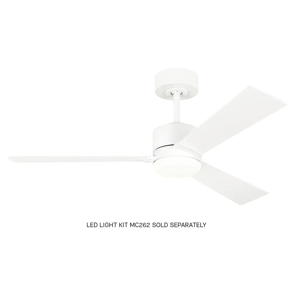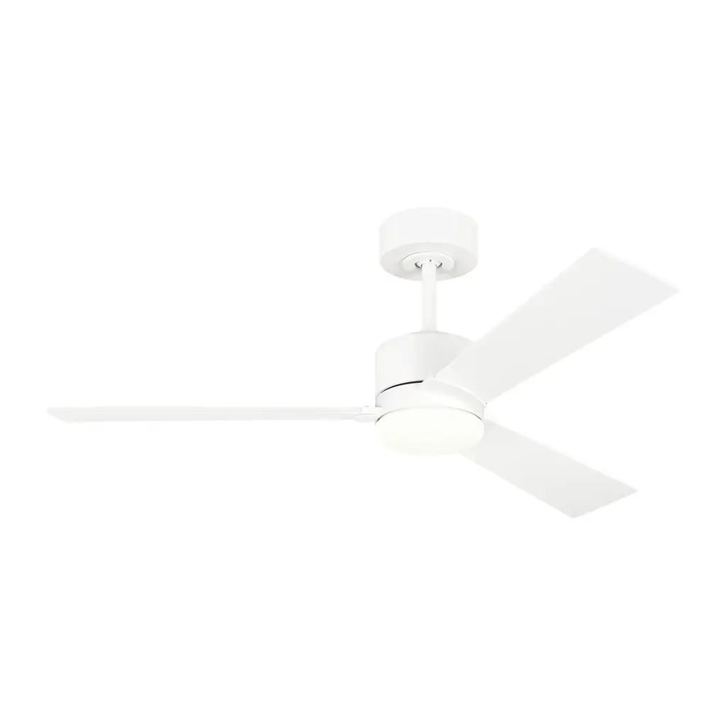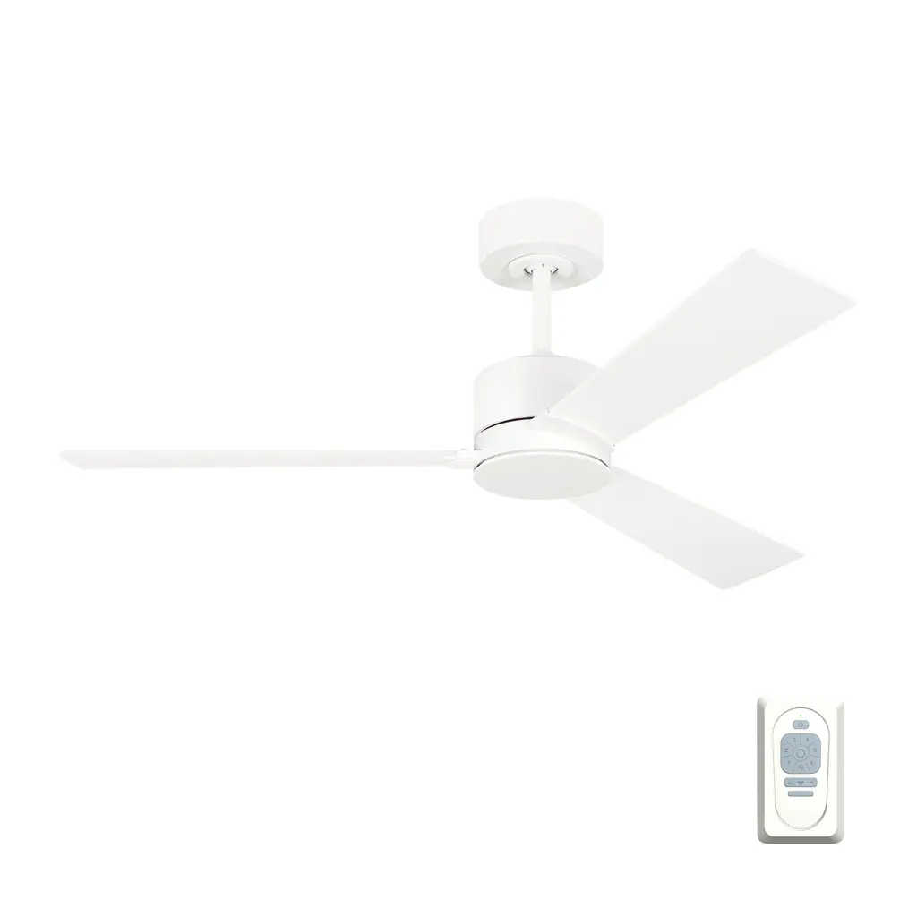 Simple in look, but elegant in function. The Rozzen Ceiling Fan brings a sleek, minimalistic design that blends into any modern environment with genius functionality. A metal housing and Plywood Blades for lasting durability, this fan option features a Universal light kit. Includes a handheld remote and features a 6-speed DC motor for high-efficiency airflow. The Rozzen 44 in Matte White features a 125.0 X 16.0 6 speed motor with a Thirteen degree blade pitch.