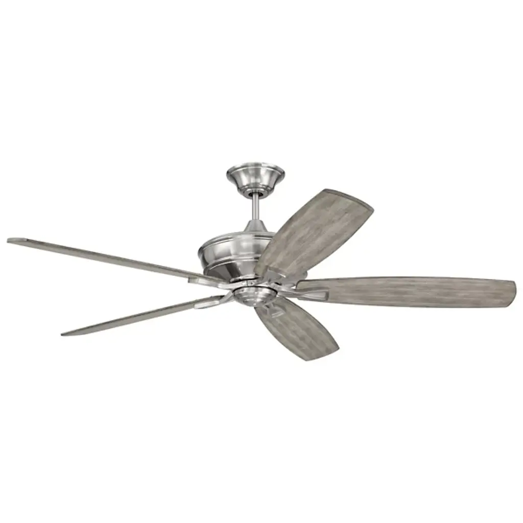 The Santori Indoor/Outdoor Ceiling Fan from Craftmade Fans brings a transitional aesthetic to your space. It is composed of metal for durability, whether used indoors as part of your living room setup or outdoors to complement your patio. This product has 5 blades capable of rotating in forward and reverse directions. 6 speeds give you customized airflow facilitated by a powerful DC motor. The included wall controller lets you operate this ceiling fan effortlessly.