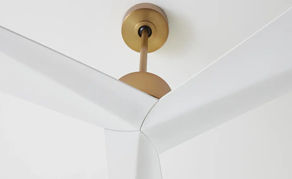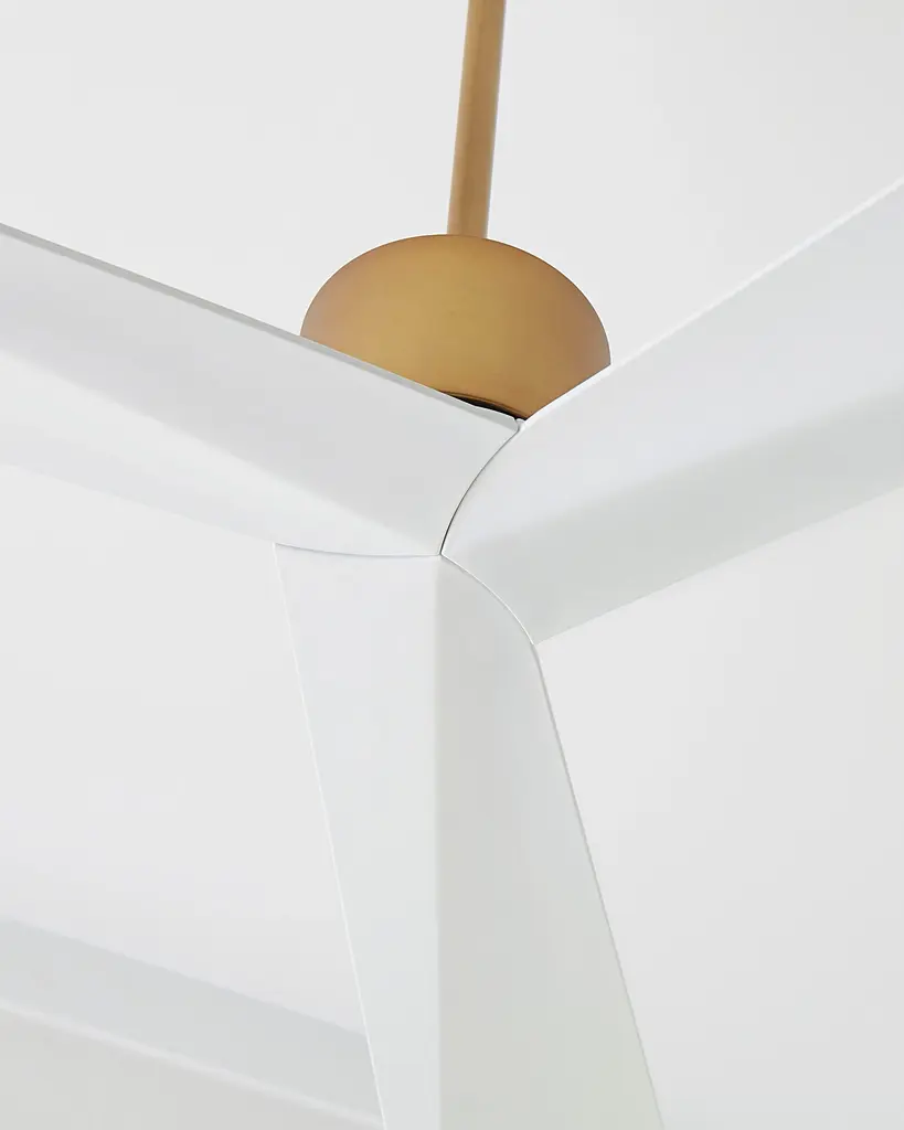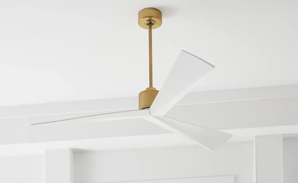 Making a bold statement with three uniquely carved, sloped blades, the Adler 60 ceiling fan has an ultra-modern aesthetic. Available in five finishes. The DC motor provides powerful airflow and outstanding energy efficiency. Adler 60 comes with a hand-held remote with six speeds. The Sean Lavin Adler 60 in Burnished Brass features a 85.0 X 28.0 6 speed motor with a Ten degree blade pitch. From the brand formerly known as Monte Carlo. Featured in the decorative Adler 60 collection. DC motor delivers ultra-powerful air movement with the whisper-quiet performance. Available finish options: Aged Pewter, Black on Black, Brushed Steel, Matte White with Brushed Steel, Matte White with Burnished Brass. ENERGY STAR® Qualified. Damp Rated . Designer: Sean Lavin Collection: Adler Room Type: Bedroom, Family Room, Office Fan Diameter: 60 Canopy: D:5 13/16'' H:2 5/16'' Round Overall Height: 12.5 Downrod Length: 6 Downrod Diameter: 0.5 # of Blades: 3 Blade Pitch: 10 Blade to Ceiling: 13.3 Fan Style: Contemporary Remote Incl: Yes Min. Ceiling Height: 8.11 Canopy Style: Downrod Canopy Diameter: 5.8 Max Blade-to-Ceiling Height: 13.3 Min Blade-to-Ceiling Height: 10 Remote Control Type: Handheld Remote, 6-speed, Reverse Max Ceiling Slope: 15 Light Kit Included: No ENERGY STAR: No Motor Size: 85.0 X 28.0 mm Safety Rating: cETL Safety RATING LOCATION: damp
