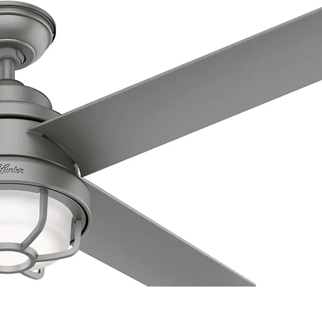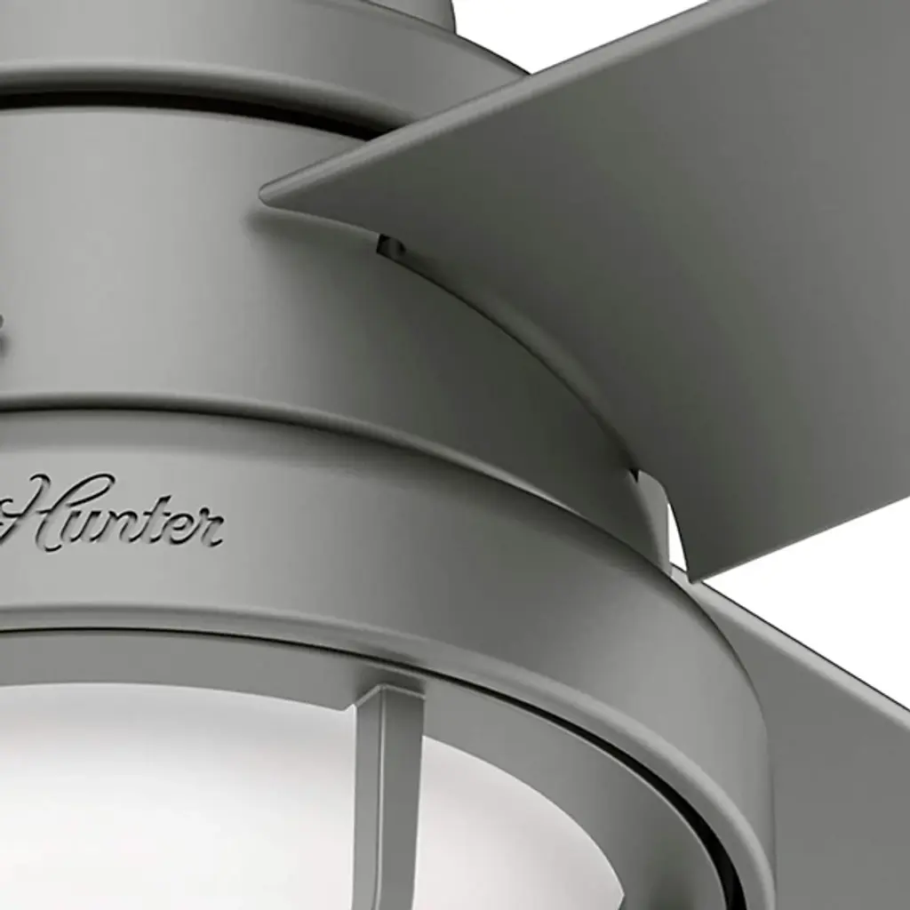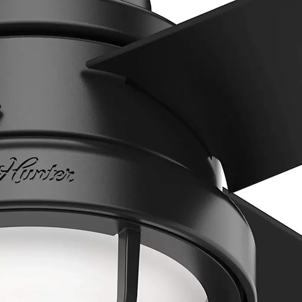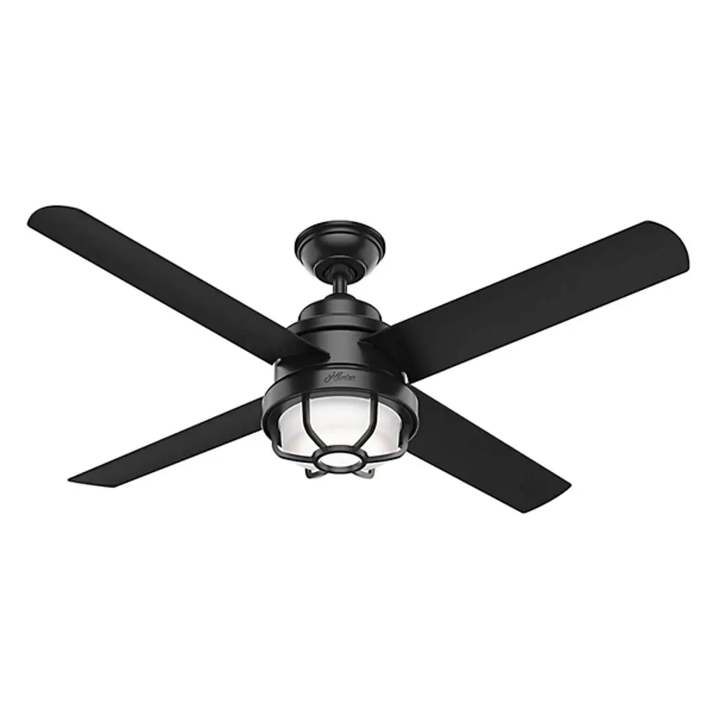 The Searow 54 Inch LED Outdoor Ceiling Fan by Hunter Fans completes and creates comfortable spaces with a lantern inspired look. Engineered for the elements, this fan from the WeatherMax® Collection withstands rusting and corrosion from salt-air and rain, working in a variety of outdoor locations and standing strong through the test of time. An included remote controls the integrated, energy-efficient light kit, adjustable speeds, and reversible options of this four-blade fan as a WhisperWind® motor provides quiet performance power.
