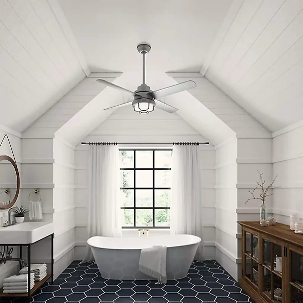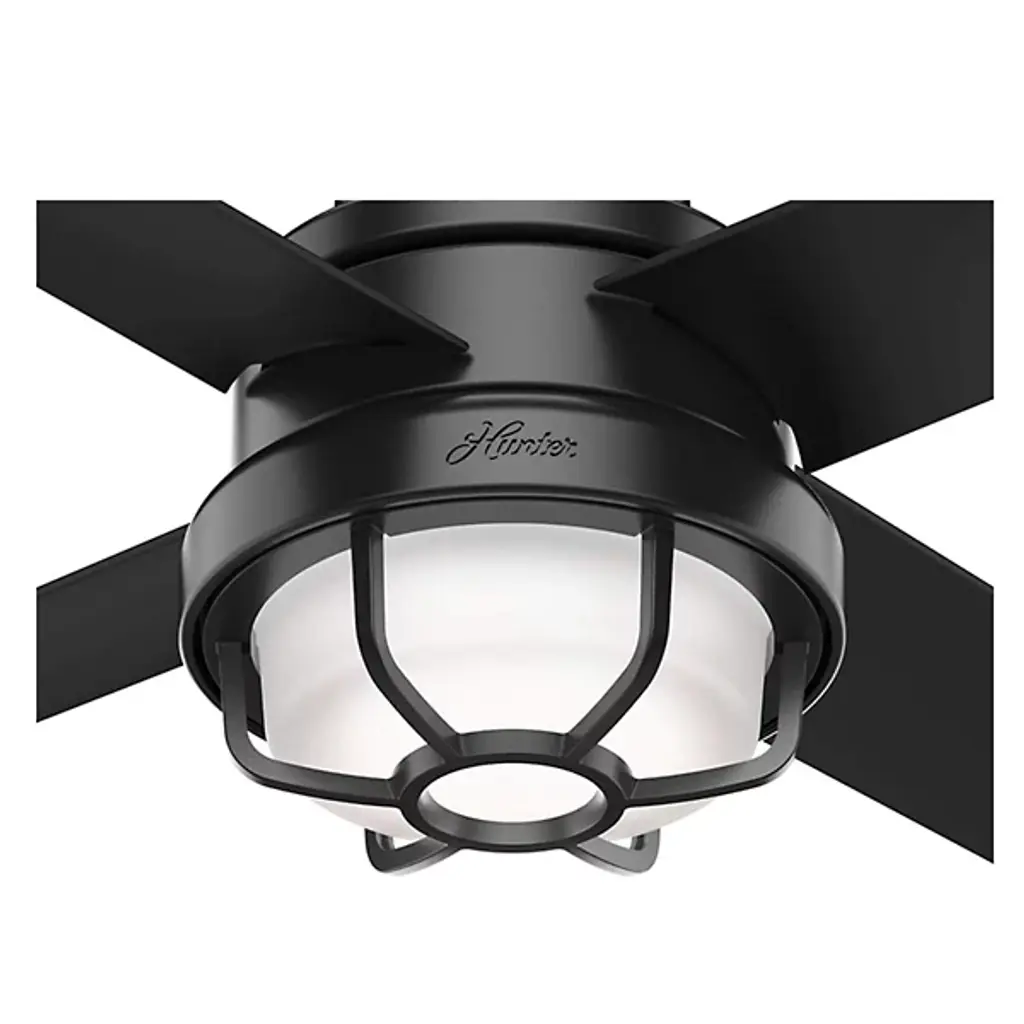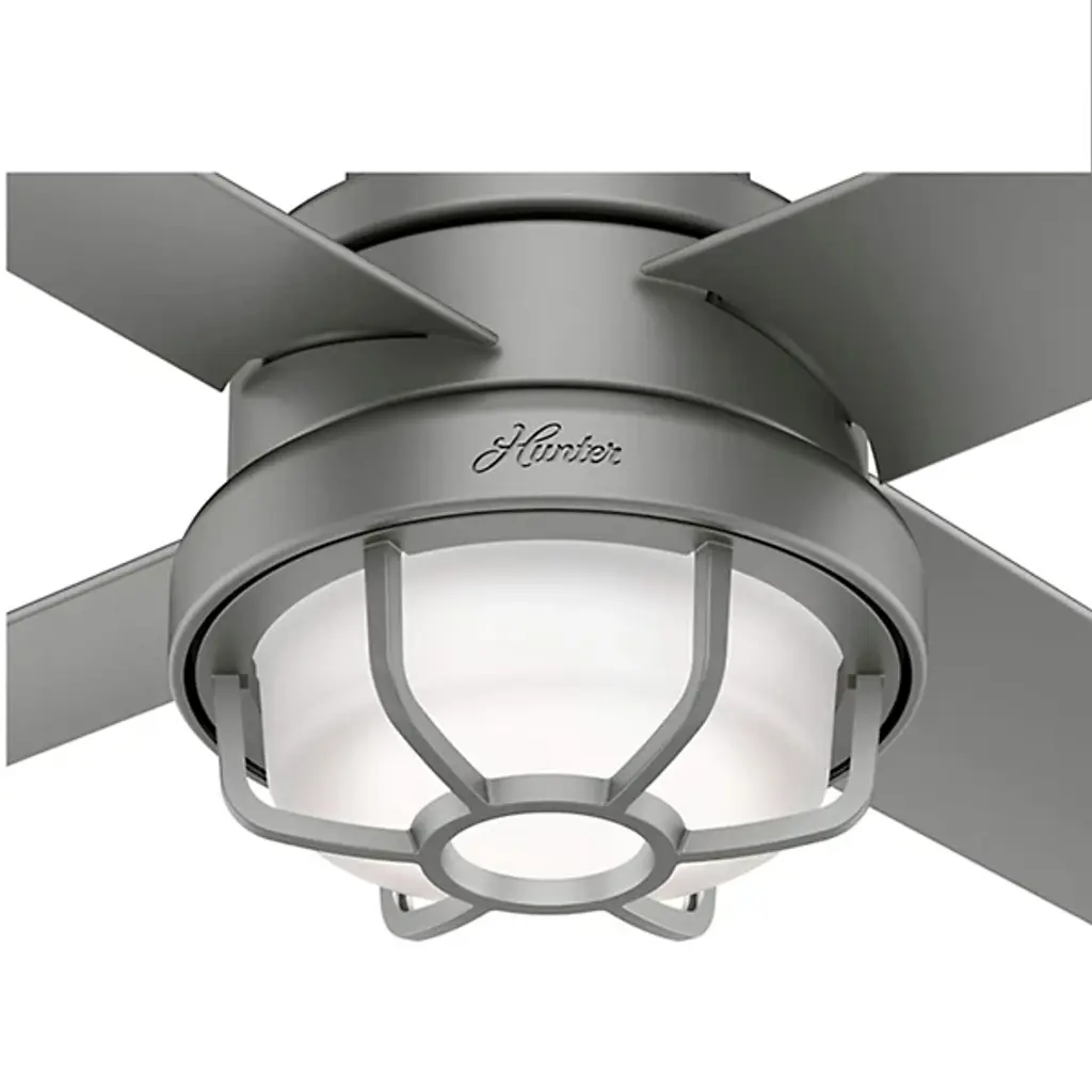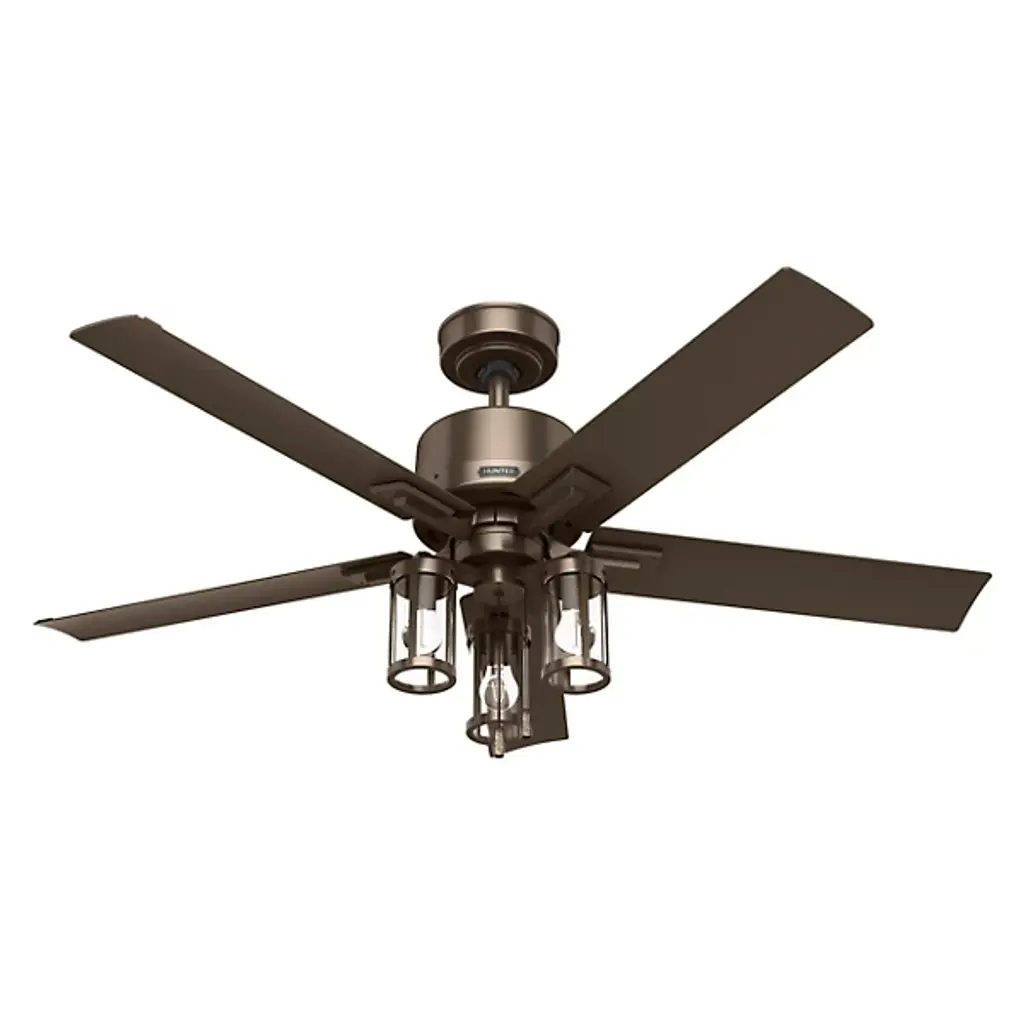 The Searow 54 Inch LED Outdoor Ceiling Fan by Hunter Fans completes and creates comfortable spaces with a lantern inspired look. Engineered for the elements, this fan from the WeatherMax® Collection withstands rusting and corrosion from salt-air and rain, working in a variety of outdoor locations and standing strong through the test of time. An included remote controls the integrated, energy-efficient light kit, adjustable speeds, and reversible options of this four-blade fan as a WhisperWind® motor provides quiet performance power.
