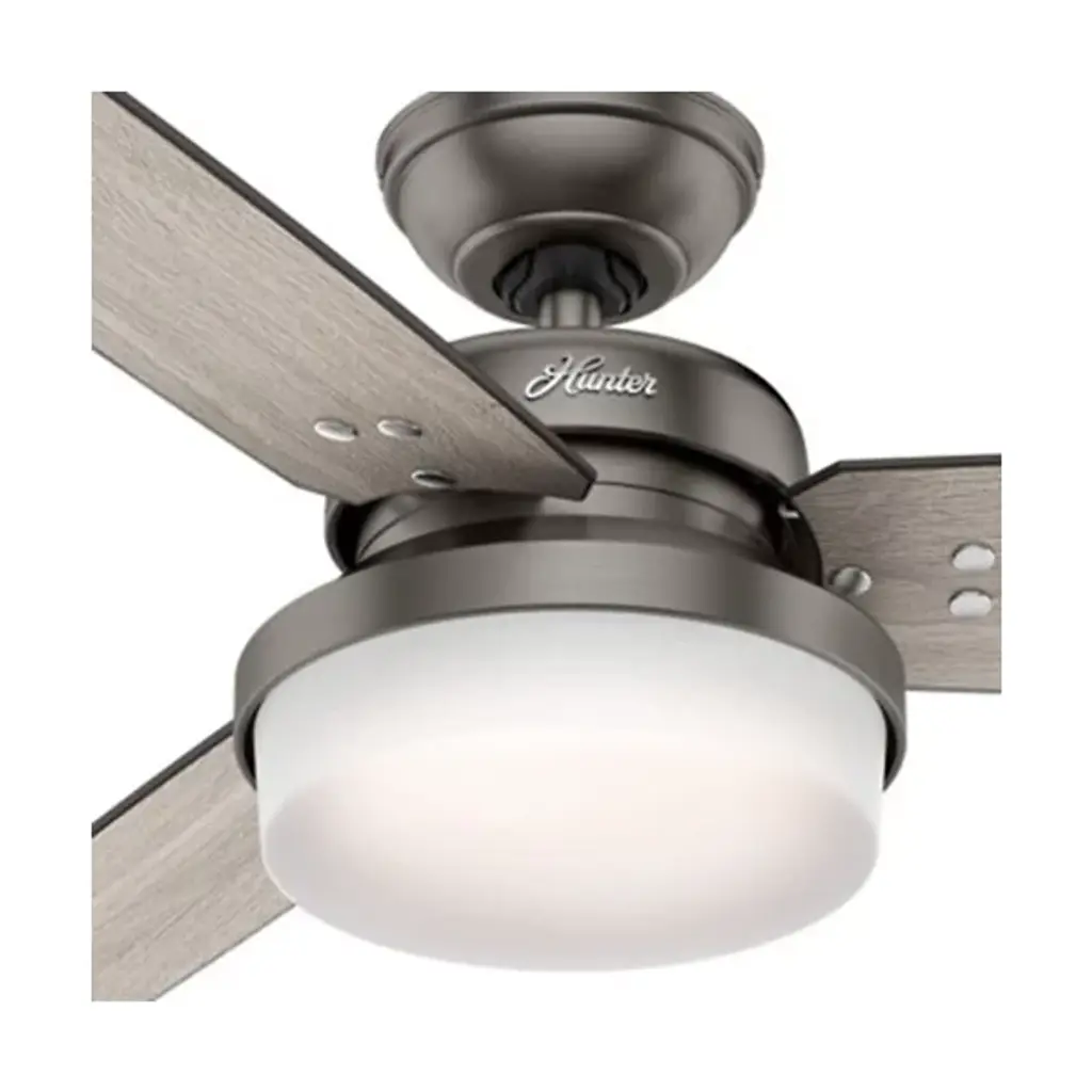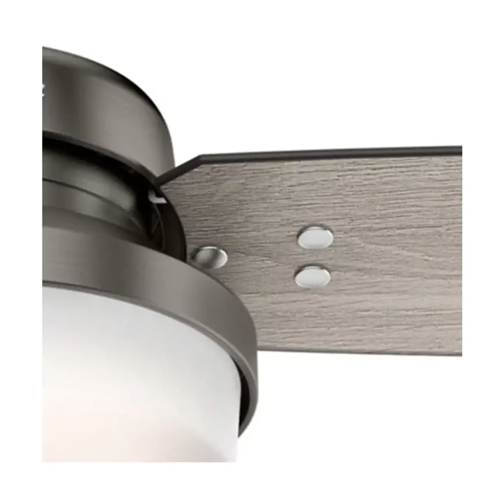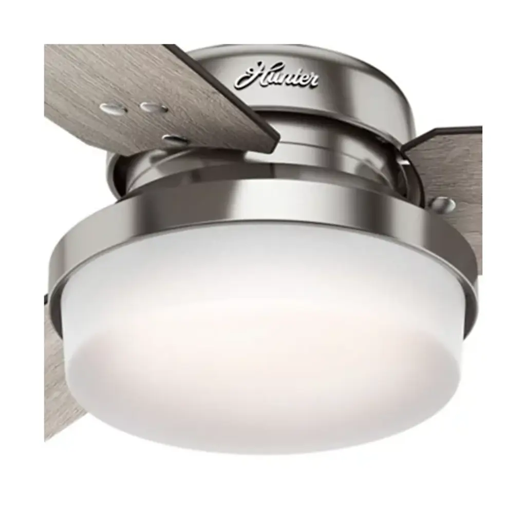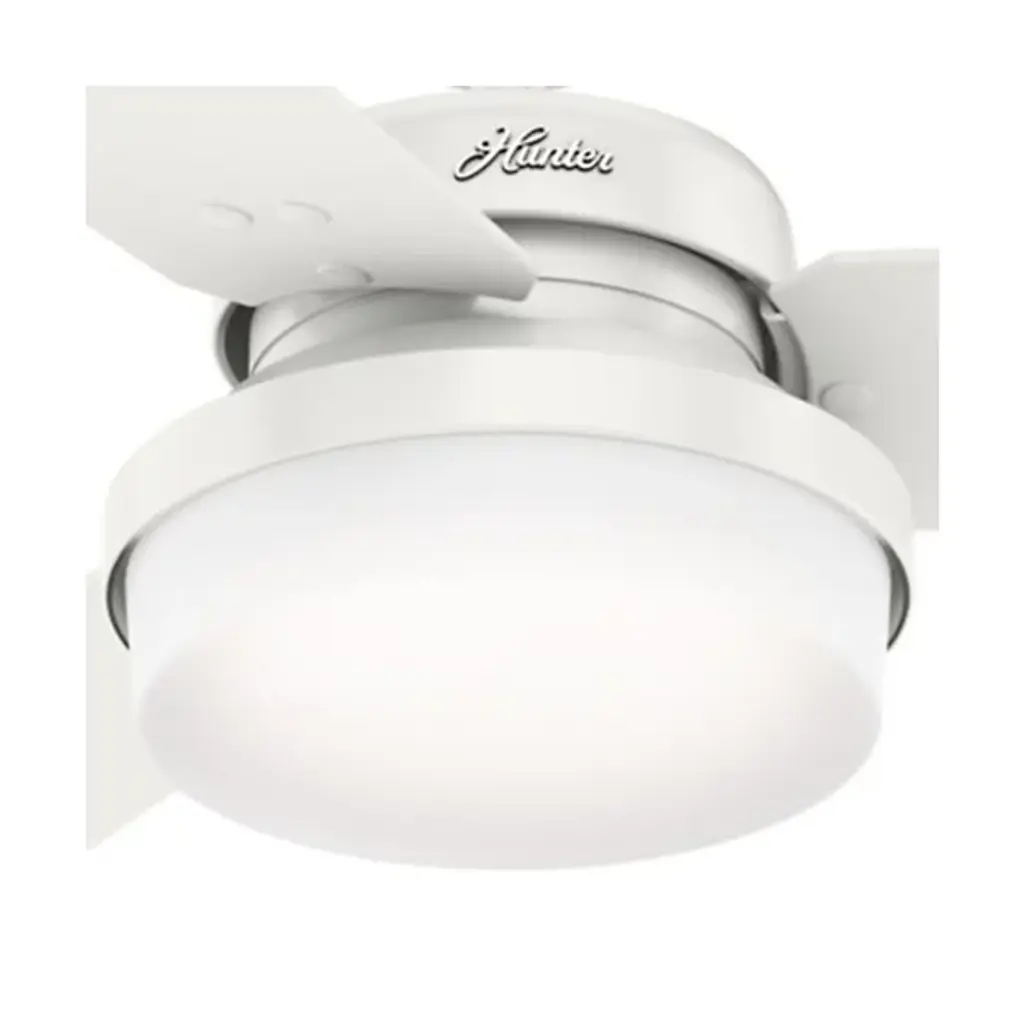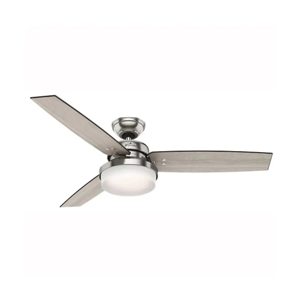 A low-profile cooling system that blends seamlessly into any interior setting. The Hunter Fans Sentinel Ceiling Fan offers a noiseless cooling system with 3 flat blades for optimal airflow. Features a dimmable LED downlight for added luminance in dark spaces. The Sentinel Ceiling Fan carries a WhisperWind motor for ultra-efficient performance throughout the year. Includes a fan/light universal handheld remote with purchase.