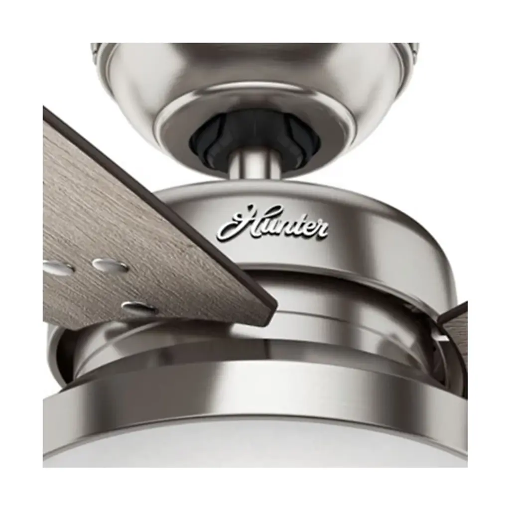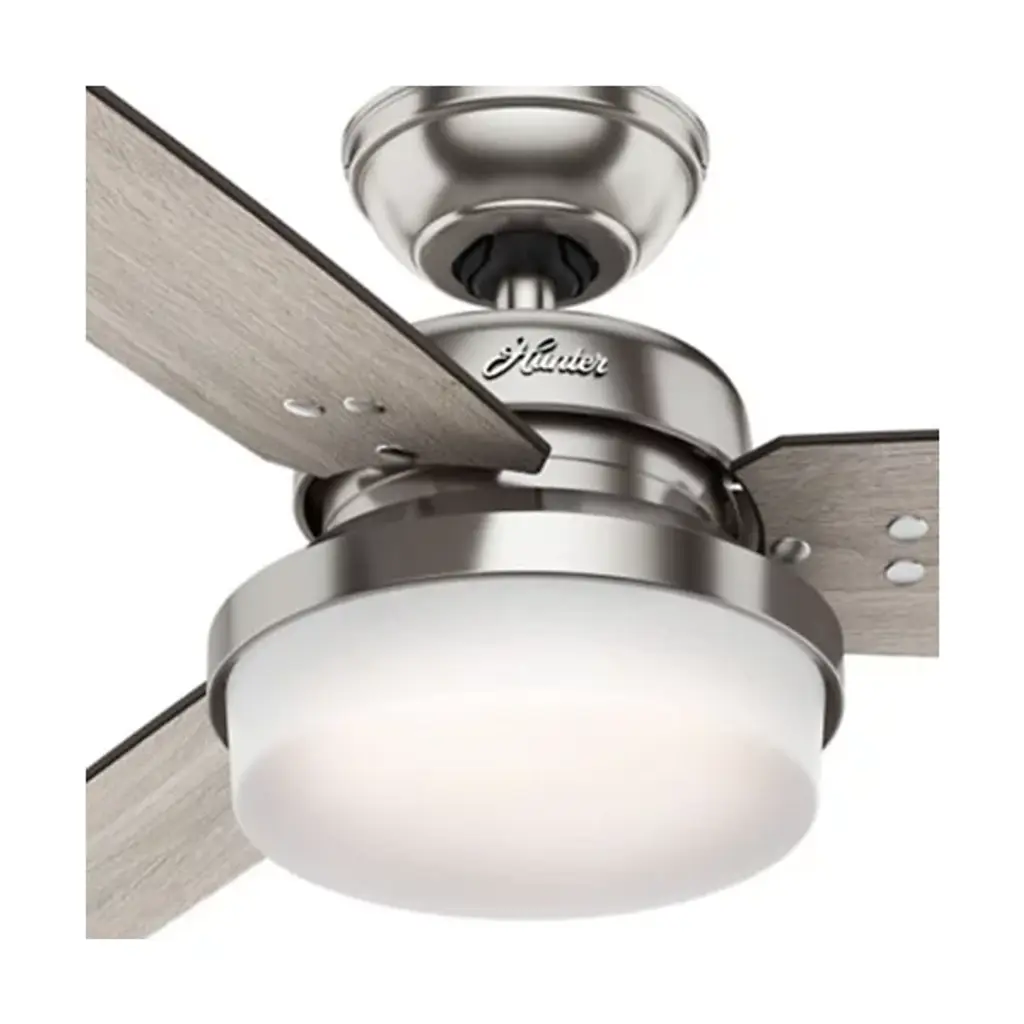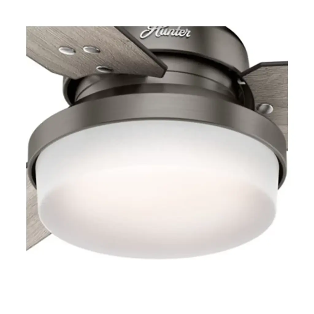 A low-profile cooling system that blends seamlessly into any interior setting. The Hunter Fans Sentinel Ceiling Fan offers a noiseless cooling system with 3 flat blades for optimal airflow. Features a dimmable LED downlight for added luminance in dark spaces. The Sentinel Ceiling Fan carries a WhisperWind motor for ultra-efficient performance throughout the year. Includes a fan/light universal handheld remote with purchase.