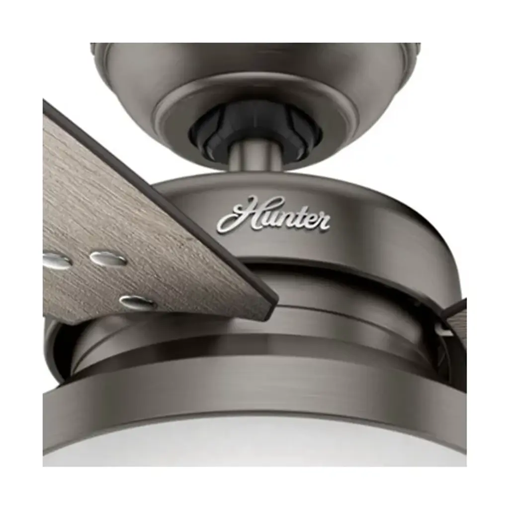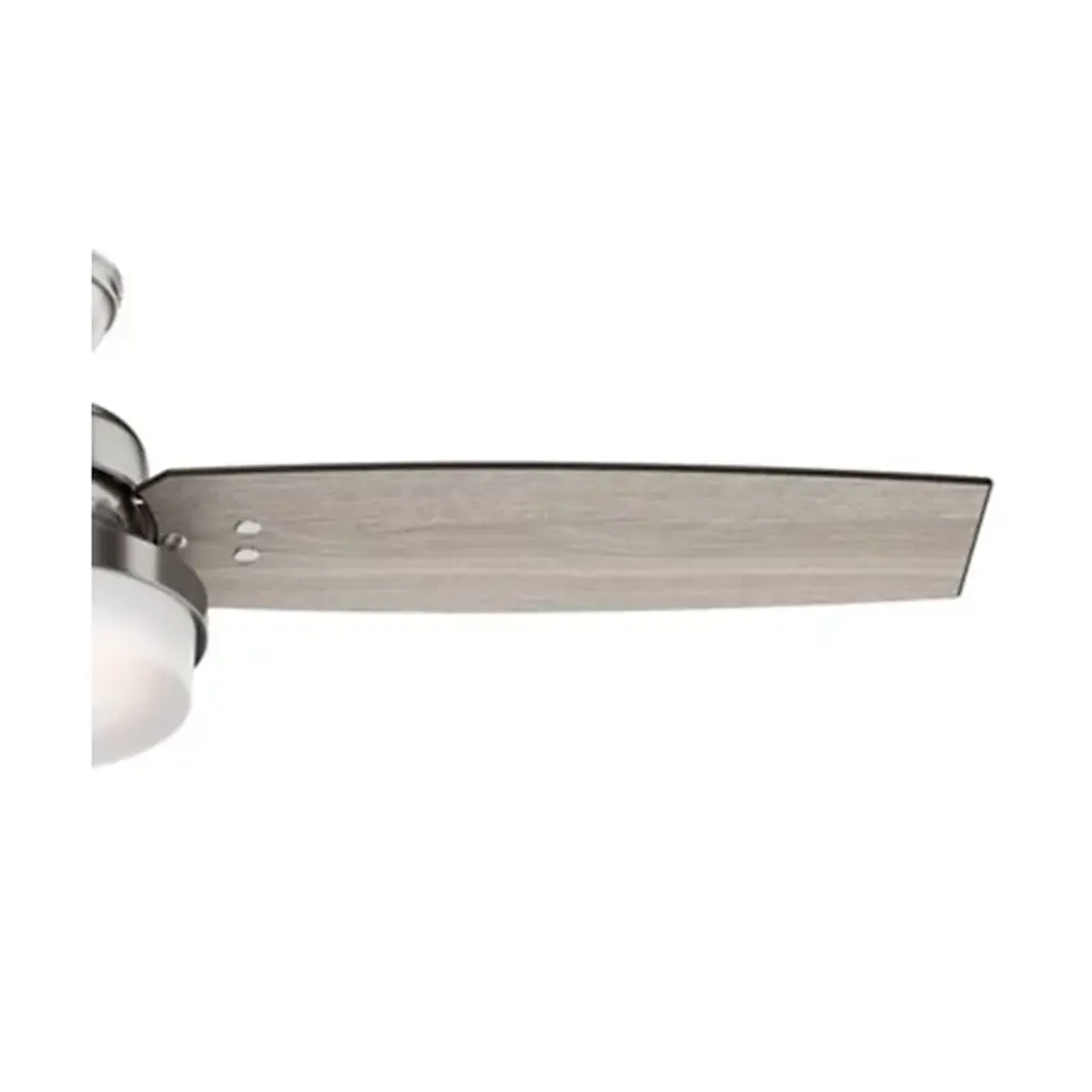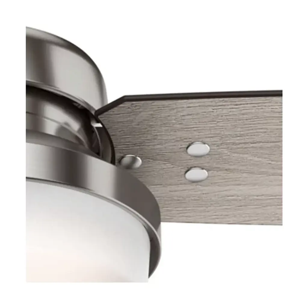 A low-profile cooling system that blends seamlessly into any interior setting. The Hunter Fans Sentinel Ceiling Fan offers a noiseless cooling system with 3 flat blades for optimal airflow. Features a dimmable LED downlight for added luminance in dark spaces. The Sentinel Ceiling Fan carries a WhisperWind motor for ultra-efficient performance throughout the year. Includes a fan/light universal handheld remote with purchase.