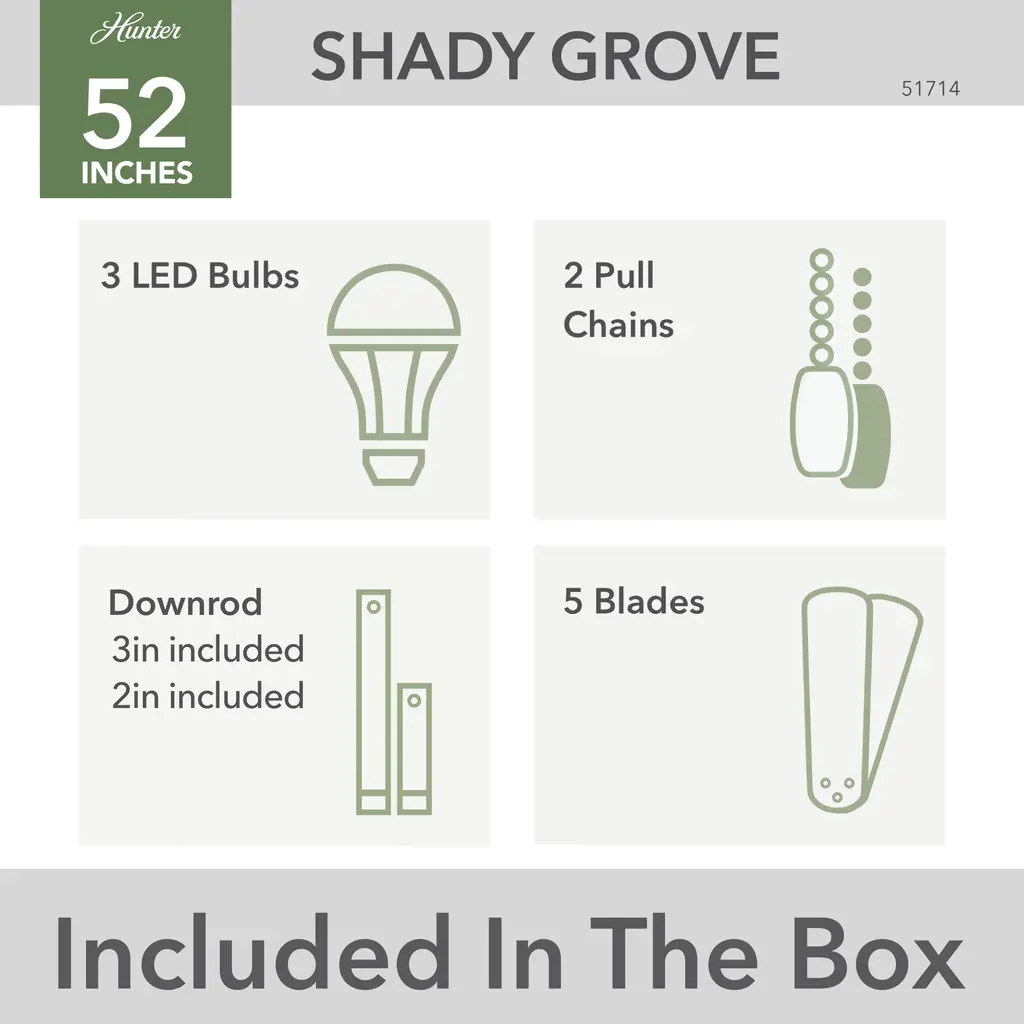 Add some contemporary style to your bedroom with the Shady Grove ceiling fan. The casual, transitional style features blades and a light kit in multiple finishes. An energy-efficient LED bulb included in the three lights can be installed in any fixture setting. The technology of our reversible, 3-speed WhisperWind® motor delivers ultra-powerful air movement with whisper-quiet performance so you get the cooling power you want without the noise you don’t™.