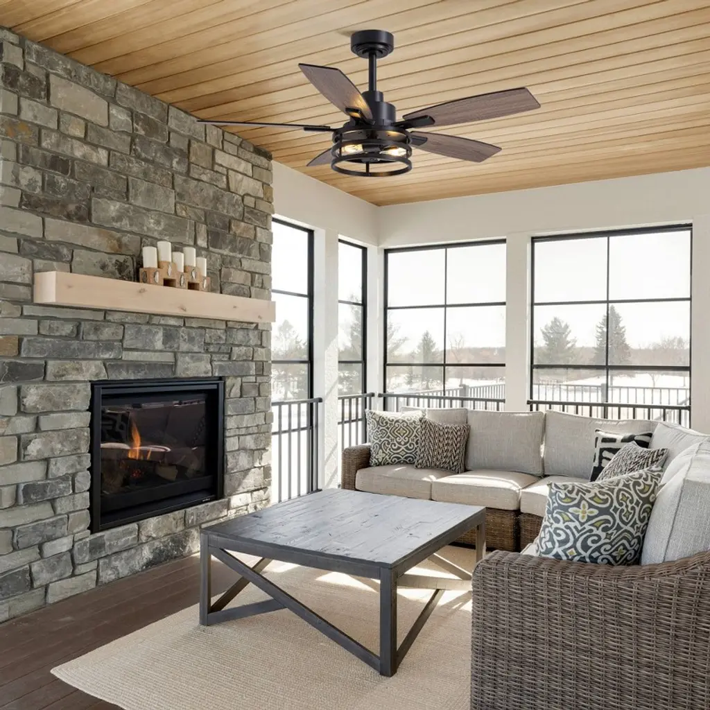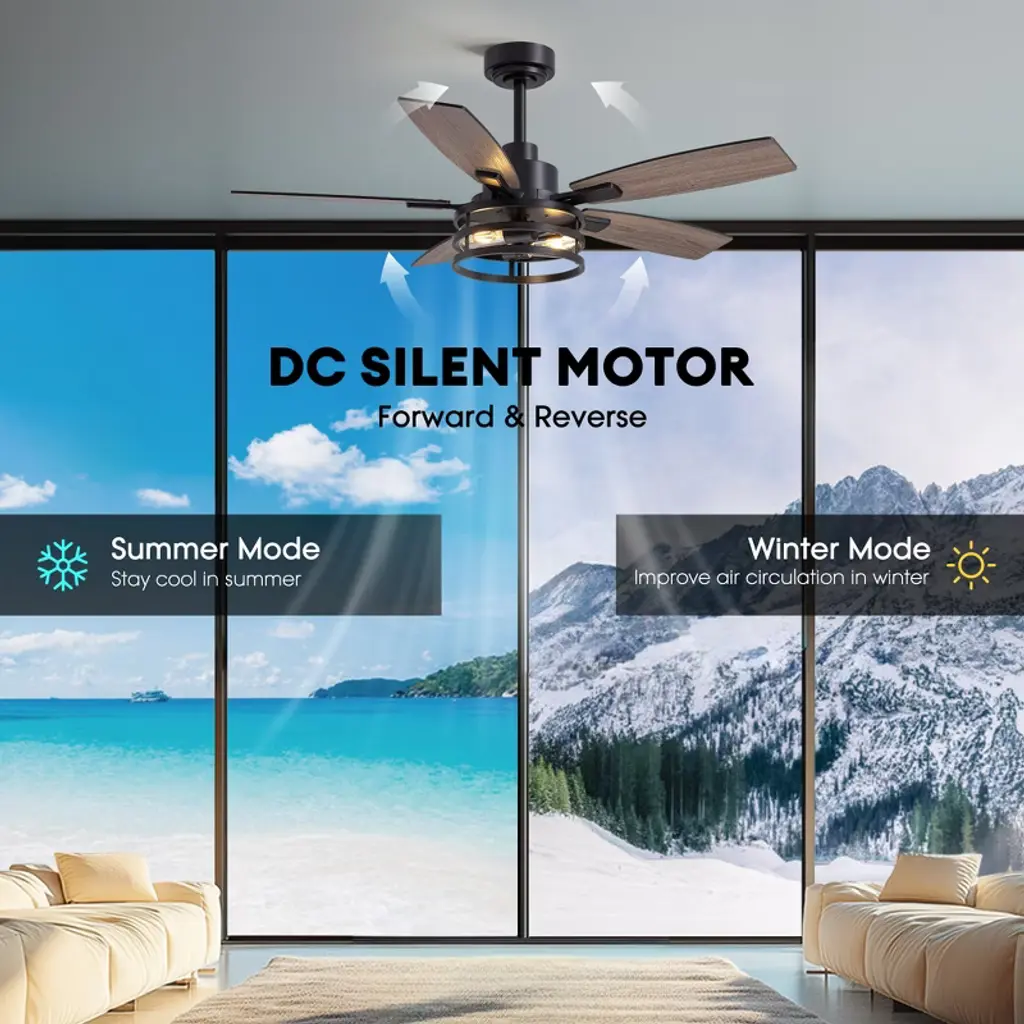 Elevate your home’s ambiance with the SILJOY 46-In Farmhouse Ceiling Fan, where cutting-edge design meets exceptional performance. This premium ceiling fan features a sleek black finish with distressed wood blades and a striking cage light design, creating the perfect blend of farmhouse charm and modern sophistication. Powered by an ultra-quiet DC motor, it delivers powerful, energy-efficient airflow while operating whisper-silent—ideal for bedrooms, living rooms, or open-concept spaces. The light provides warm, adjustable illumination, while the included remote control allows effortless adjustment of fan speed and lighting
