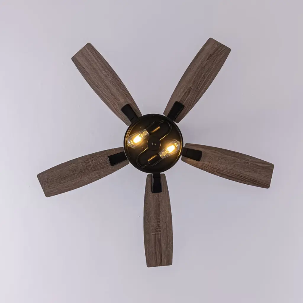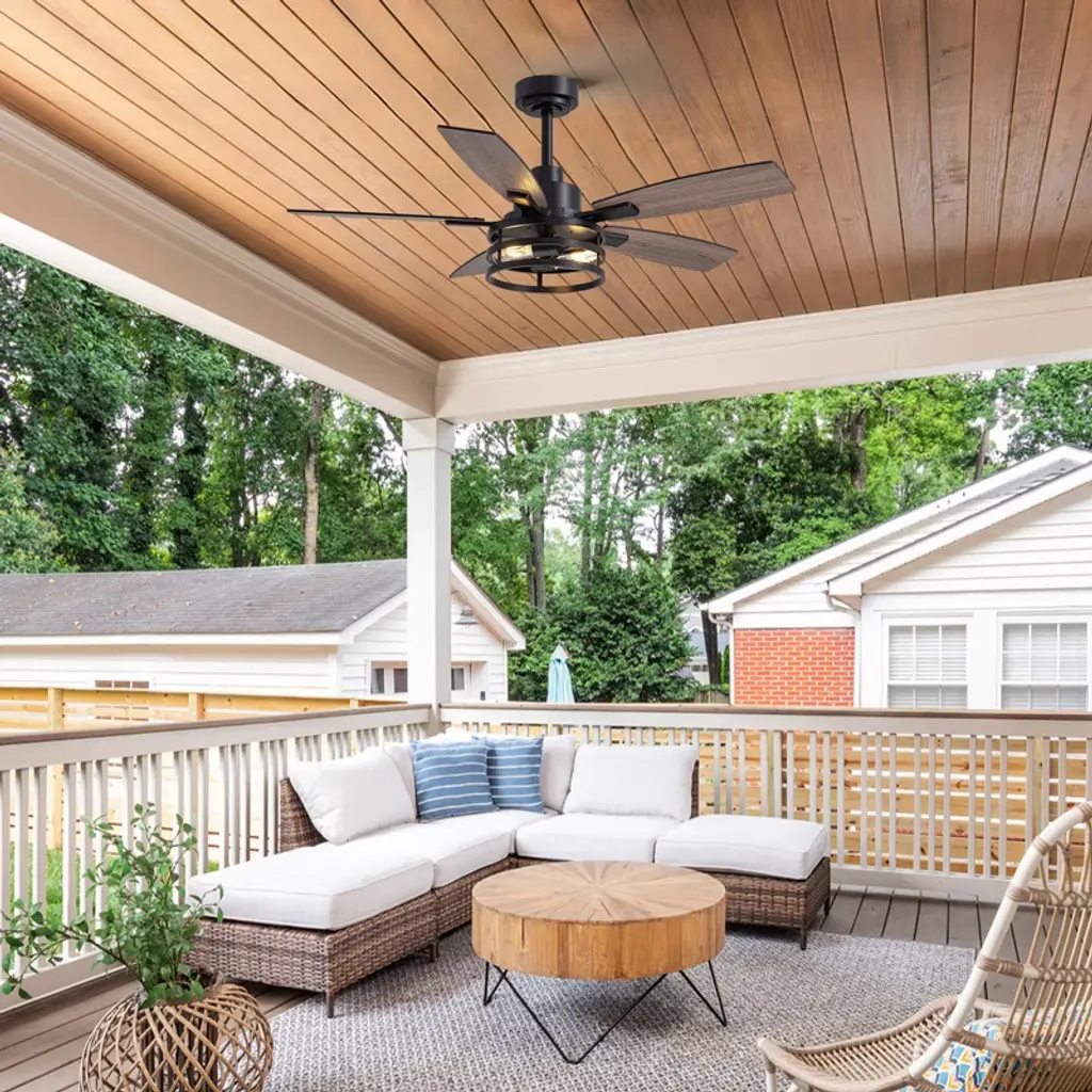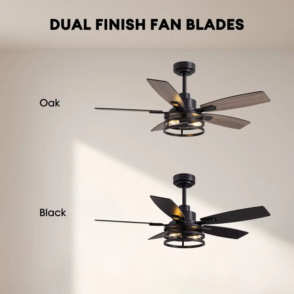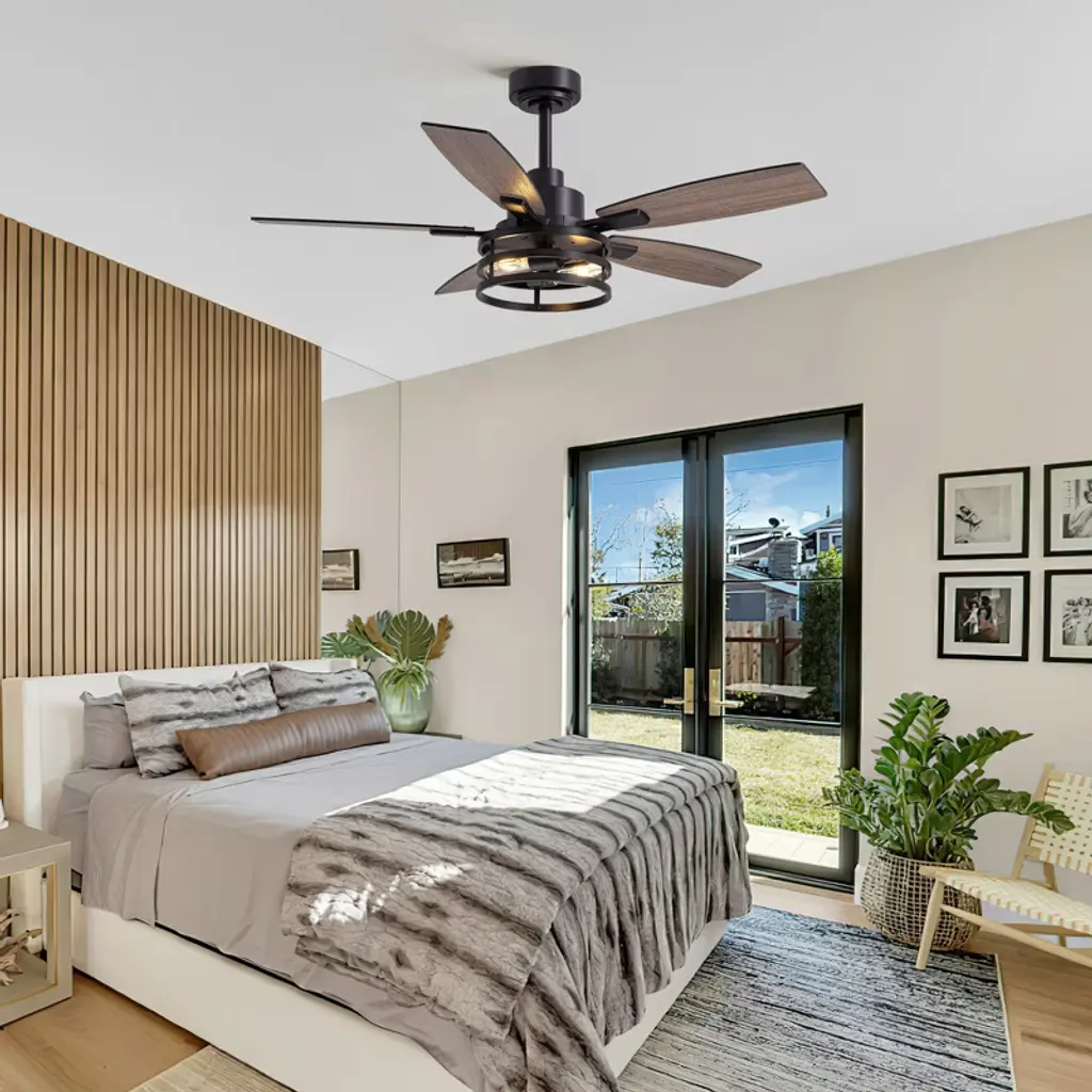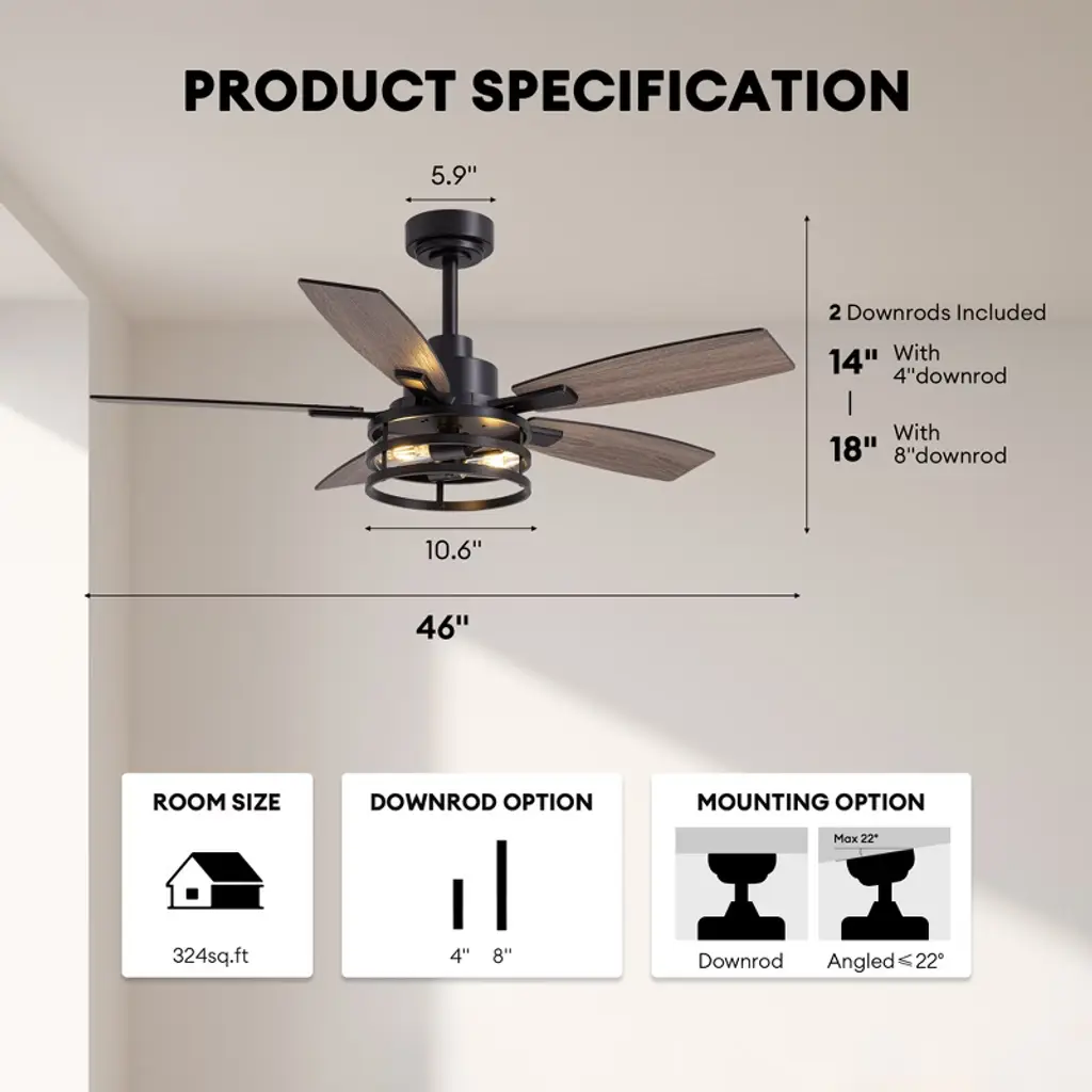 Siljoy 46-in Farmhouse Cage Ceiling Fan With Walnut Or Black Color Blades Ceiling Fan With Light - Remote Included ( 5-blade Bulb Not Included)