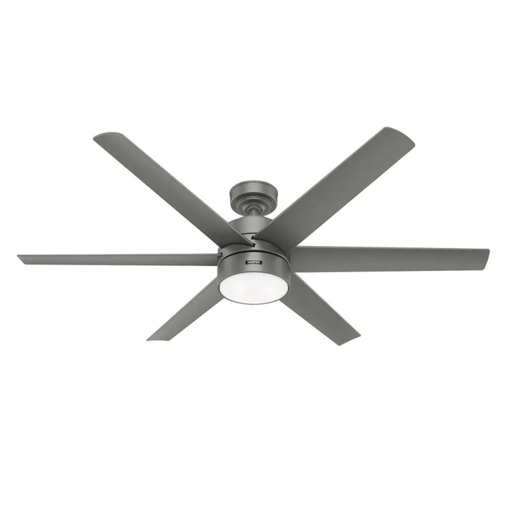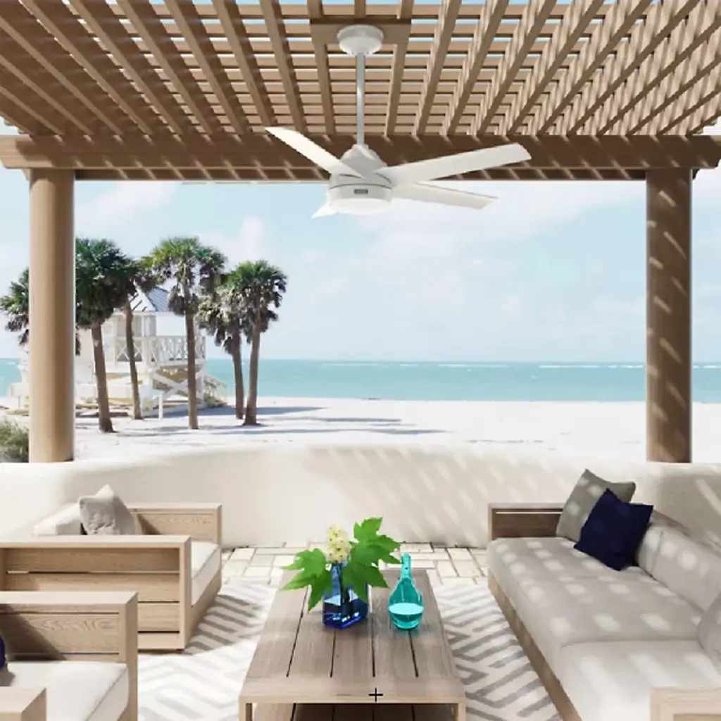 Skyflow Indoor/Outdoor LED Ceiling Fan from Hunter Fans blends contemporary style, functionality, and energy efficiency. Crafted with high-quality metal and a glass shade, this ceiling fan enhances your living space. With 5 blades, Skyflow offers versatility when it comes to draft direction. The AC motor lends powerful performance, while the 6 fan speeds in forward and reverse offer customizable comfort. Illuminate your surroundings with its integrated LED and enjoy peace of mind, as Skyflow is Energy Star Qualified.