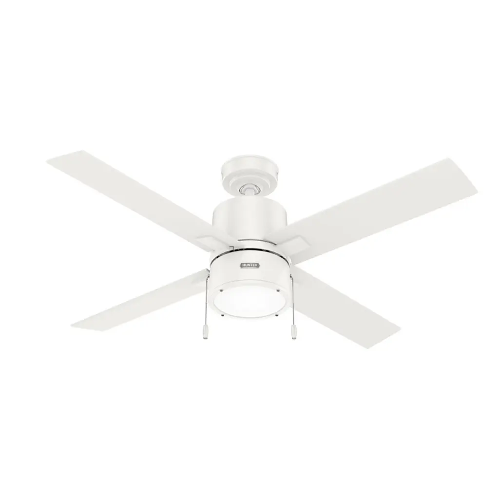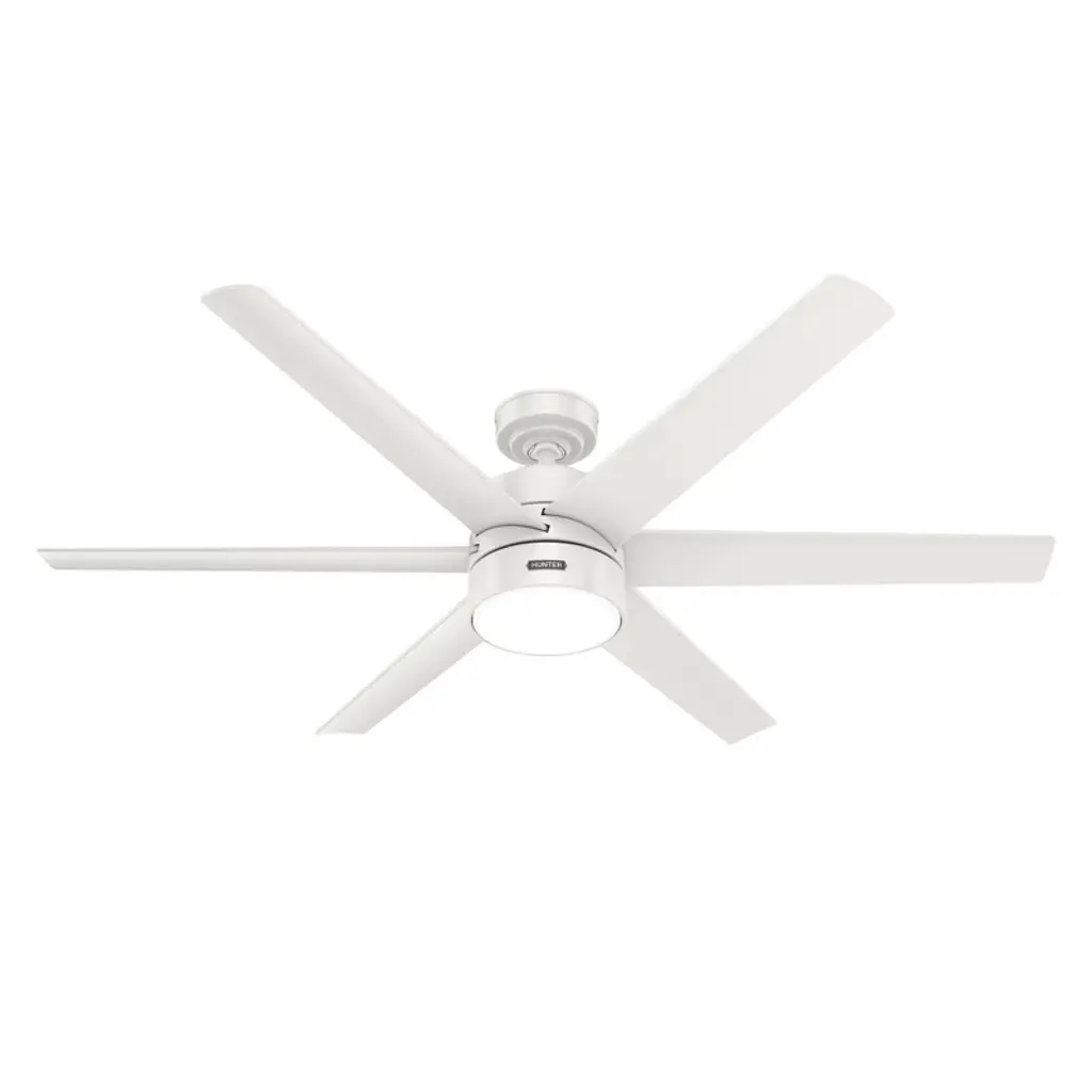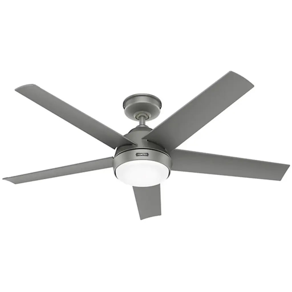 Skyflow Indoor/Outdoor LED Ceiling Fan from Hunter Fans blends contemporary style, functionality, and energy efficiency. Crafted with high-quality metal and a glass shade, this ceiling fan enhances your living space. With 5 blades, Skyflow offers versatility when it comes to draft direction. The AC motor lends powerful performance, while the 6 fan speeds in forward and reverse offer customizable comfort. Illuminate your surroundings with its integrated LED and enjoy peace of mind, as Skyflow is Energy Star Qualified.