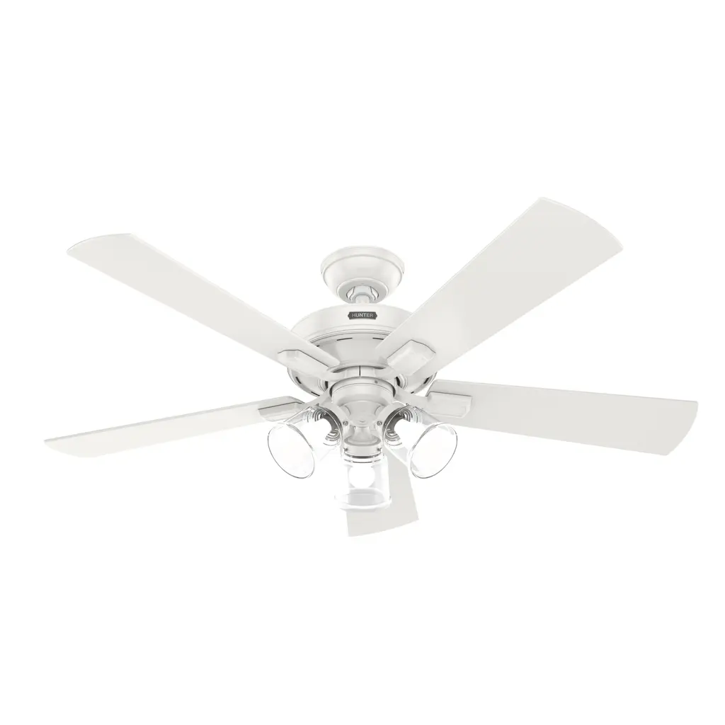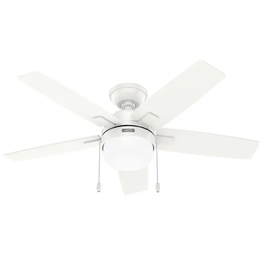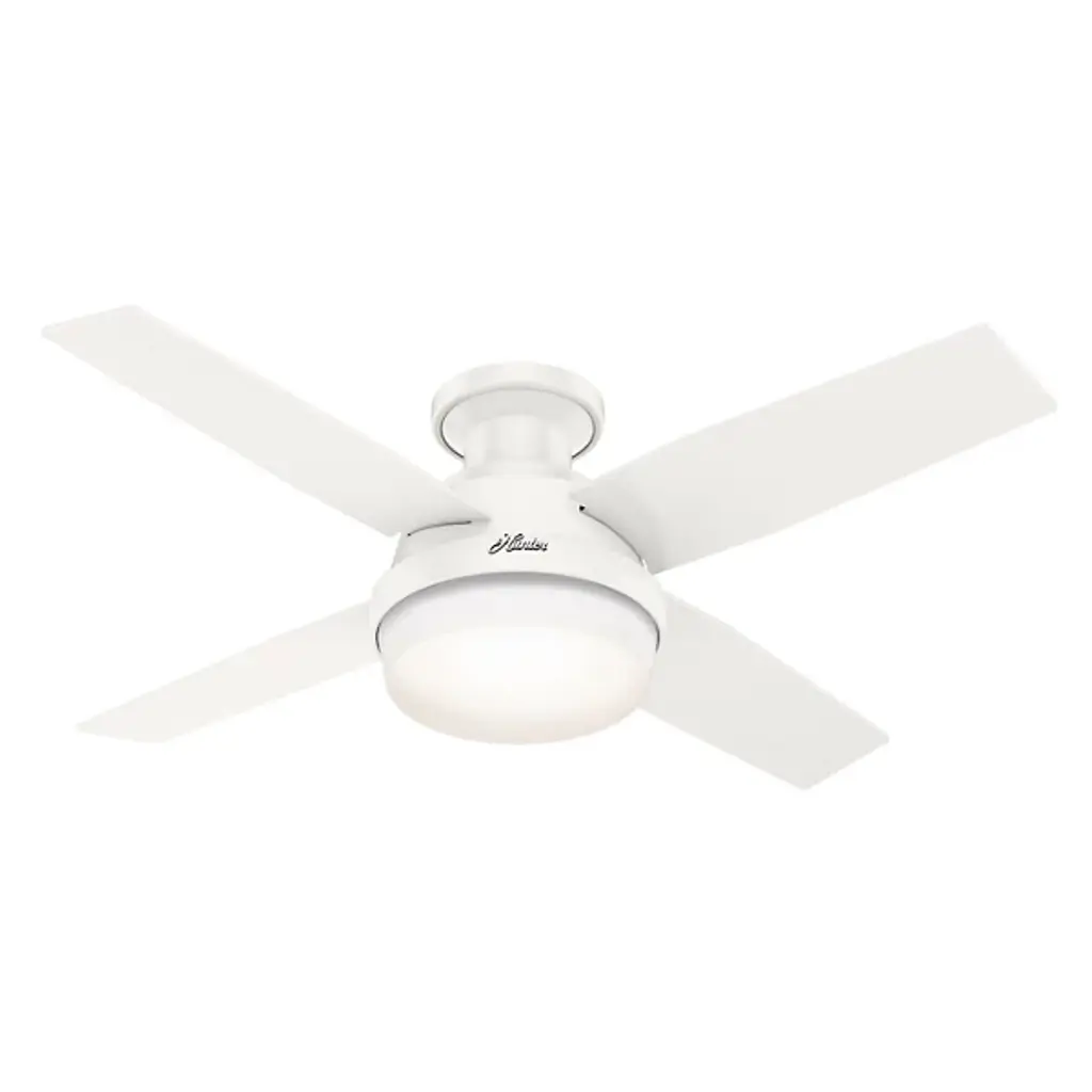 Skyflow Indoor/Outdoor LED Ceiling Fan from Hunter Fans blends contemporary style, functionality, and energy efficiency. Crafted with high-quality metal and a glass shade, this ceiling fan enhances your living space. With 5 blades, Skyflow offers versatility when it comes to draft direction. The AC motor lends powerful performance, while the 6 fan speeds in forward and reverse offer customizable comfort. Illuminate your surroundings with its integrated LED and enjoy peace of mind, as Skyflow is Energy Star Qualified.