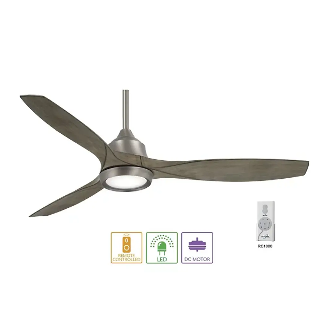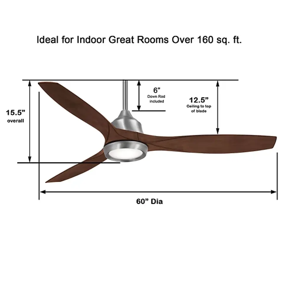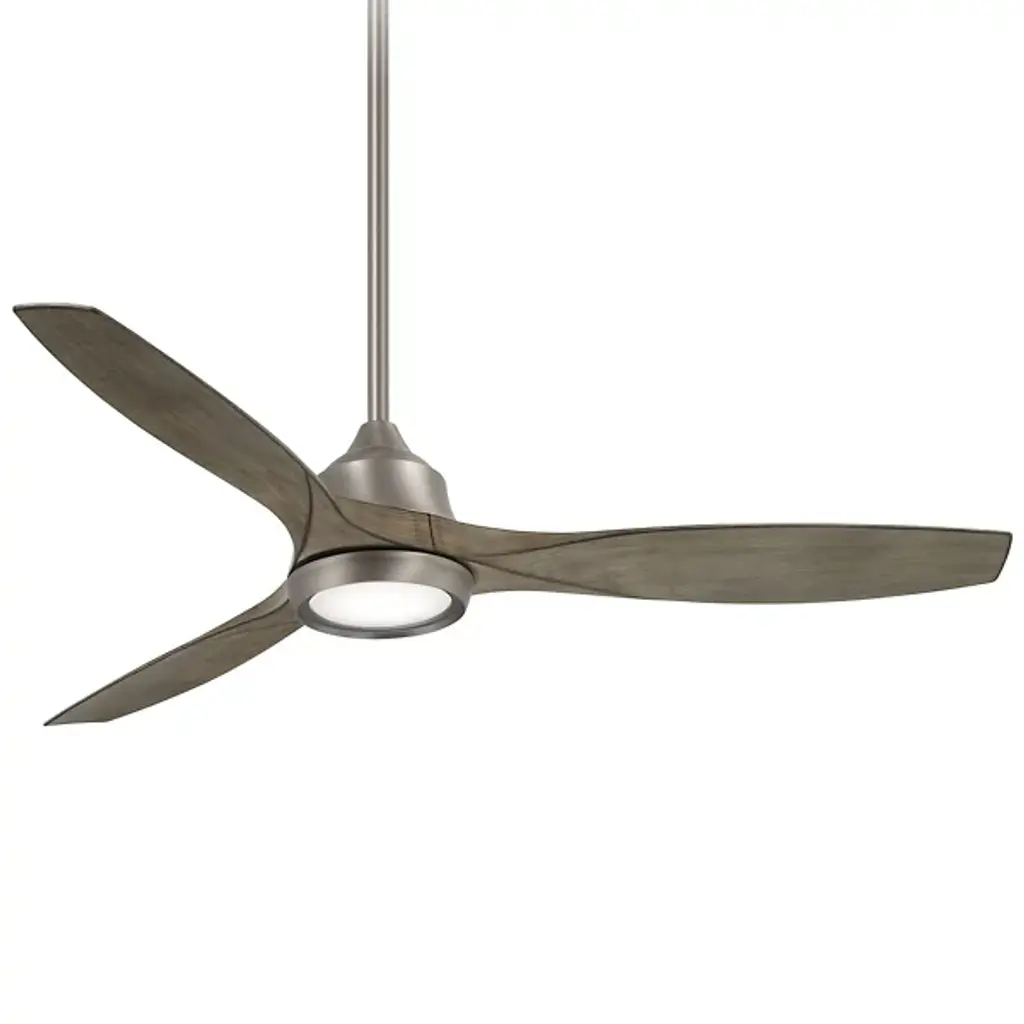 Add a sleek and stylish touch to your modern home with the comforting presence of the Skyhawk LED Ceiling Fan from Minka Aire Fans. A smooth metal downrod leads to a matching body that is perfectly enclosed upon by a set of three driftwood blades. The blades come together to resemble a single piece as they deftly circulate the air, bringing unmatched comfort throughout the space. An integrated LED rests on the underside of the piece, presenting a glow that fully illuminates the space below.