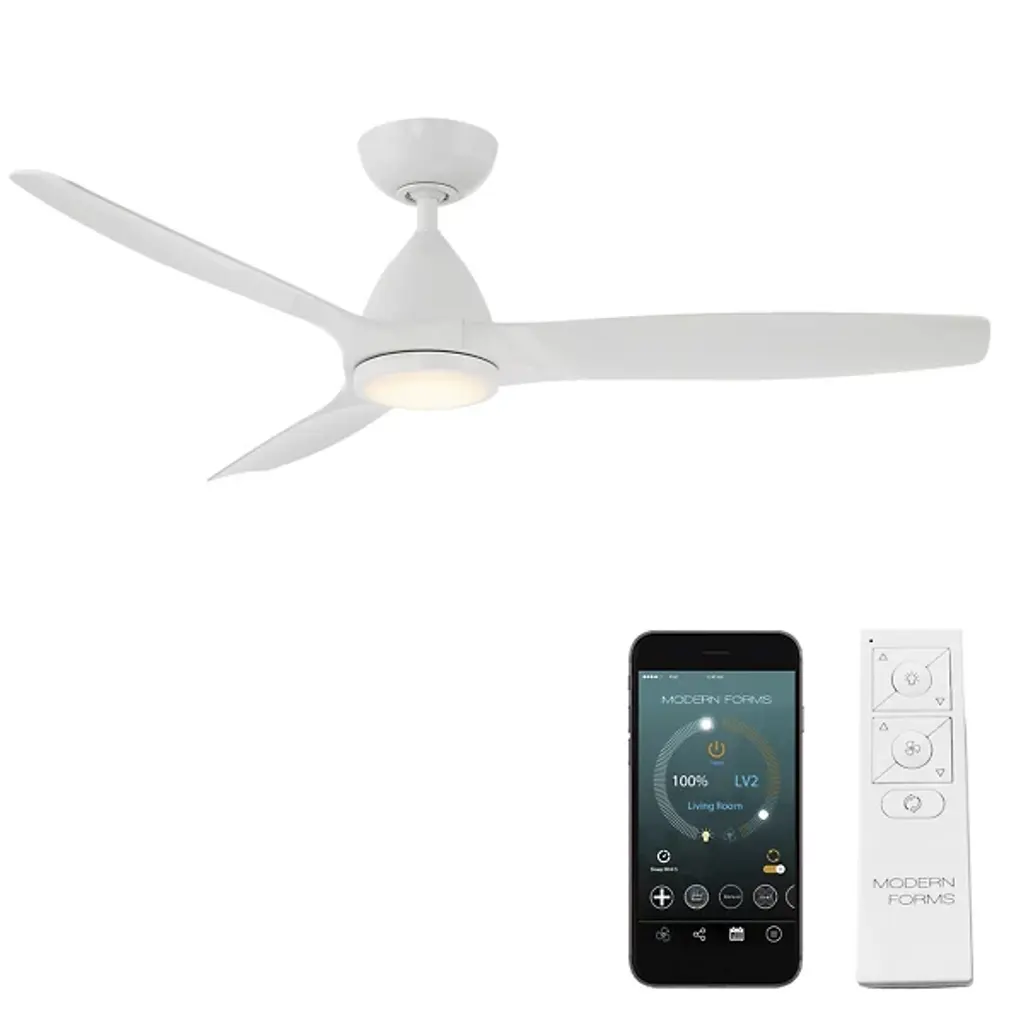 Elevate your home ambiance with the new Skylark Indoor/Outdoor LED Smart Ceiling Fan from Modern Forms, offering a sleek design and intelligent functionality. Explore captivating finishes like soft brass, brushed nickel, and the debut of the weathered ebony finish. With three meticulously crafted blades, this fan ensures efficient air circulation and gentle illumination through its integrated LED luminaire. Control options include a convenient 6-speed setup via the BT remote or the Modern Forms app, seamlessly integrating with your smart home devices for effortless operation with Google Assistant and Amazon Echo.