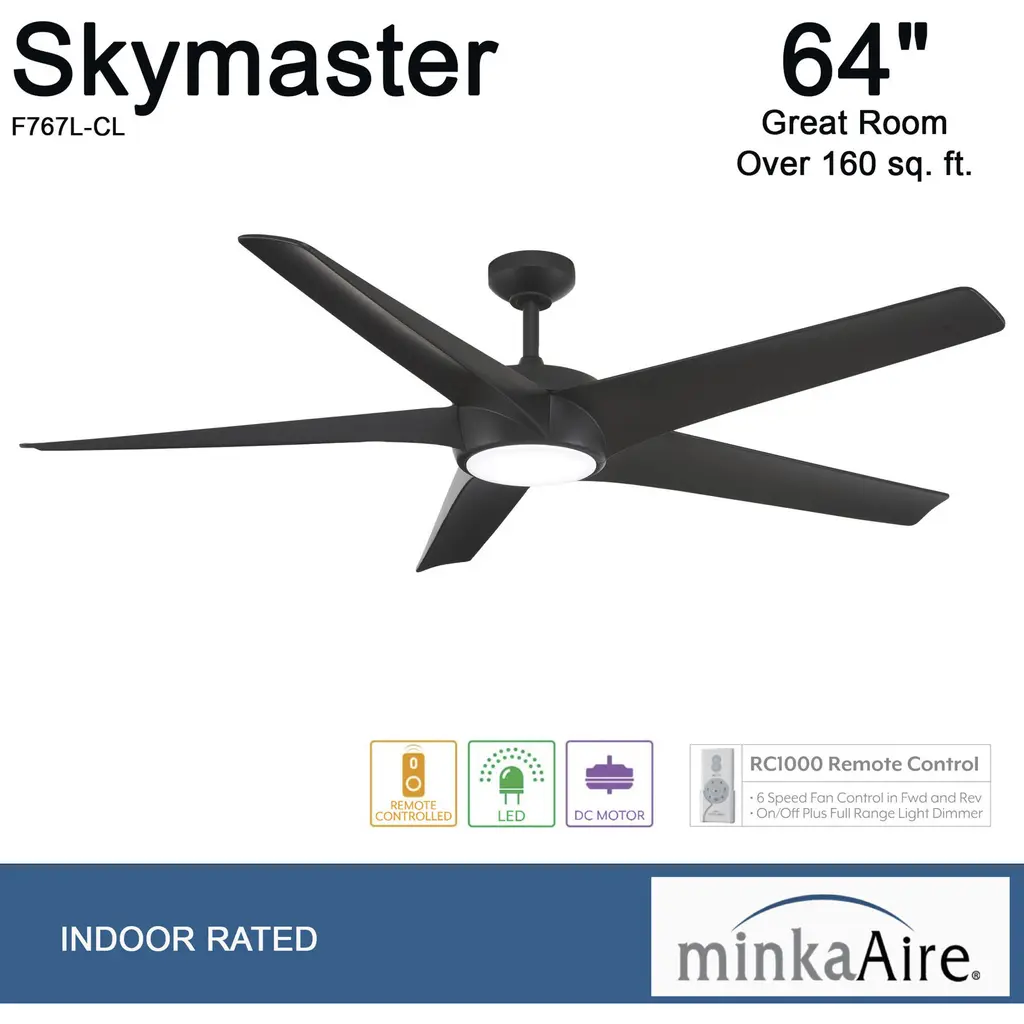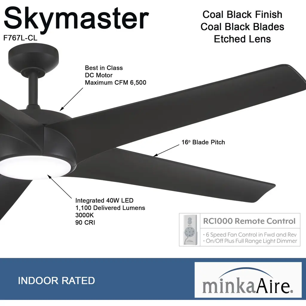 This 1 light Ceiling Fan from the Skymaster collection by Minka-Aire will enhance your home with a perfect mix of form and function. The features include a Coal finish applied by experts. This item qualifies for free shipping!