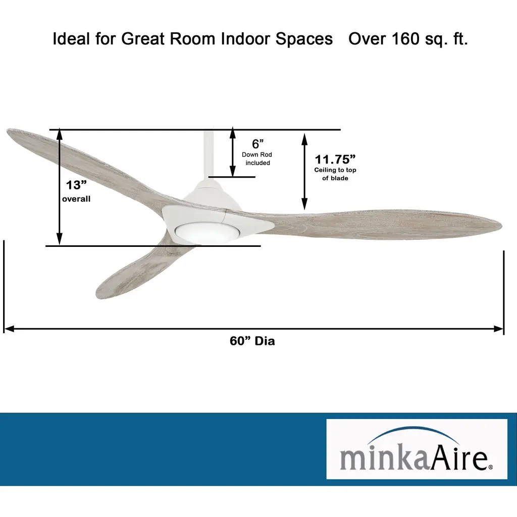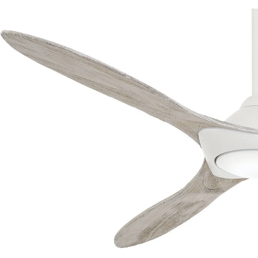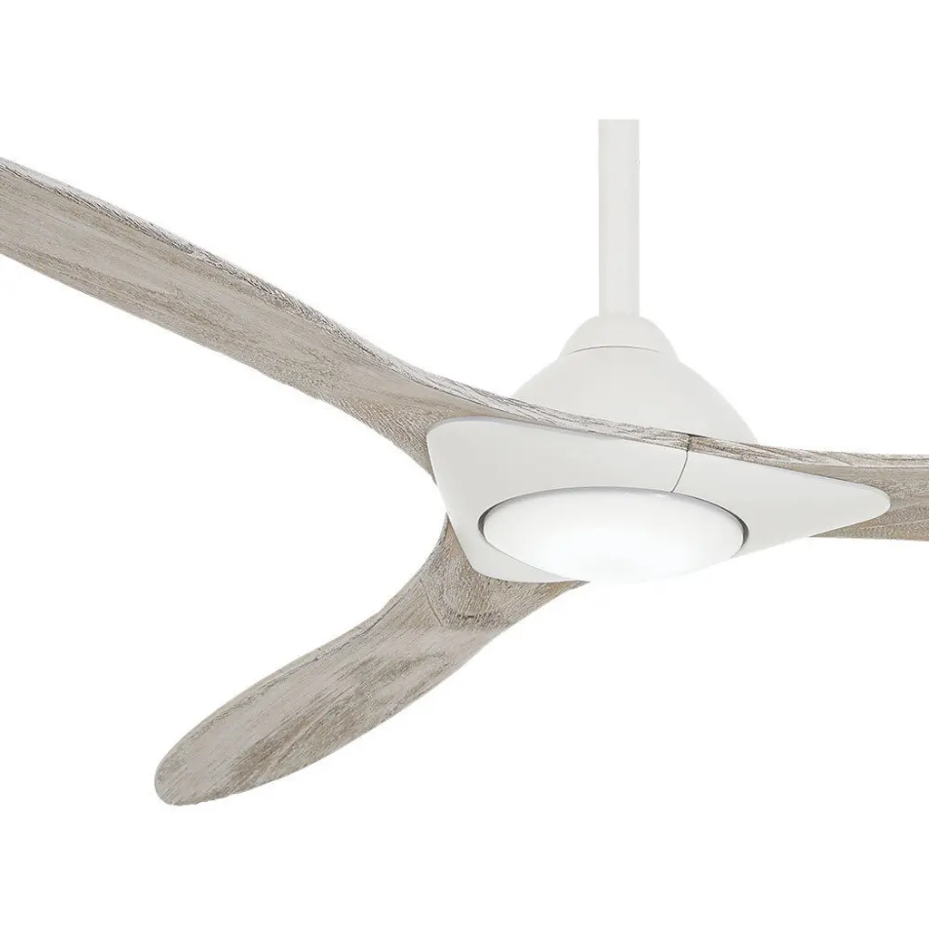 60" 3-Blade LED Ceiling Fan in a Flat White Finish with Bleached Seasoned Wood Blades and an Etched Lens