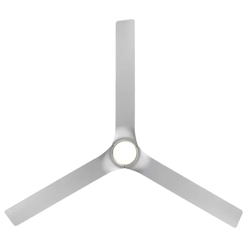 The Smooth Indoor/Outdoor Smart LED Ceiling Fan from Modern Forms blends minimalist design with advanced functionality, featuring three sleek blades that curve seamlessly into the housing for a refined 52-inch sweep. An integrated LED light at its center casts a warm glow through an opal lens, enhancing its modern aesthetic. A cover is included for non-light use. Effortless control is available via the Modern Forms app or optional Bluetooth wall control, with full compatibility across smart home systems like Google Home, Amazon Alexa, and Samsung SmartThings.