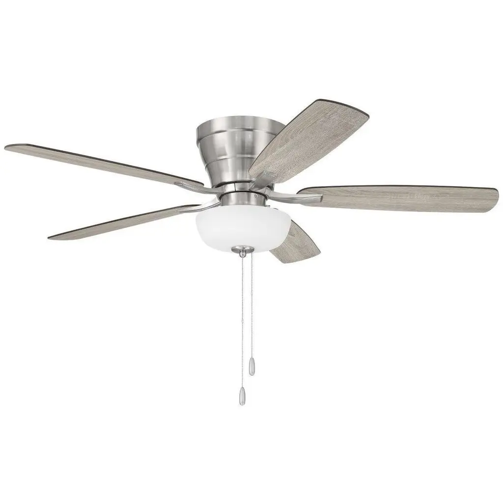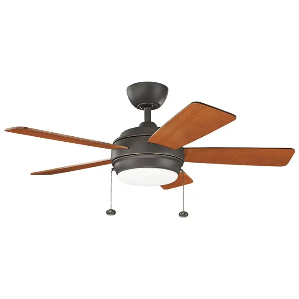 With a mix of soft and hard color tones, the Kichler Starkk LED Ceiling Fan is the ideal solution for any interior in need of cool airflow and a touch of décor. Made from steel, the Starkk LED Ceiling Fan runs smoothly with a durable motor housing system that features 3 forward speeds and 2 pull chains for manual control. The Starkk LED Ceiling Fan includes an opal etched glass light kit that provides ample downlight for added luminance.