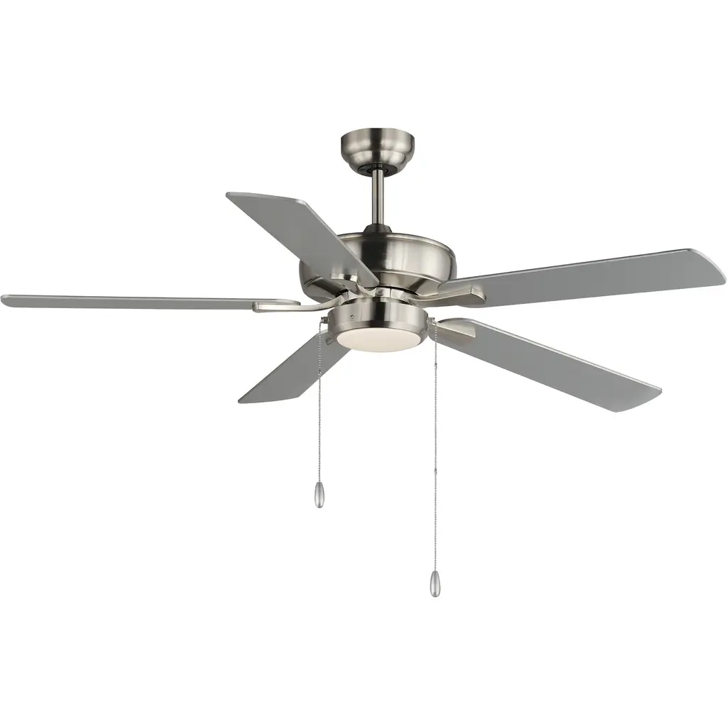 A long awaited update to the conventional indoor fan collection. Updated blades, brackets, and motor housing for more transitional spaces. A streamlined LED fan light kit pairs perfectly with the updated design. Available in Matte Black with Black/Walnut fan blades, Satin Nickel with Silver/Distressed-Wood Fan Blades, or White with White/White-Oak fan blades.