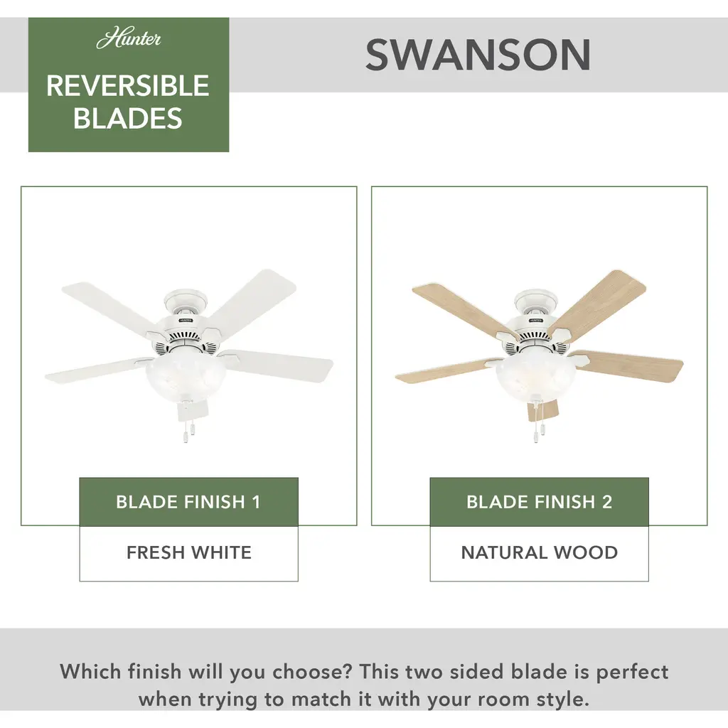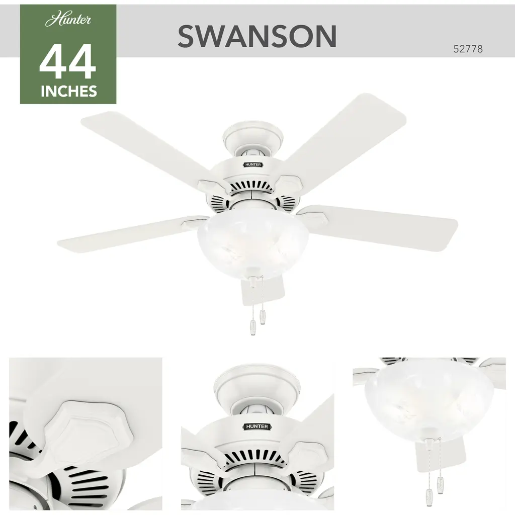 Swanson 44 Inch Fresh White With Fresh White/natural Wood Blades Ceiling Fan
