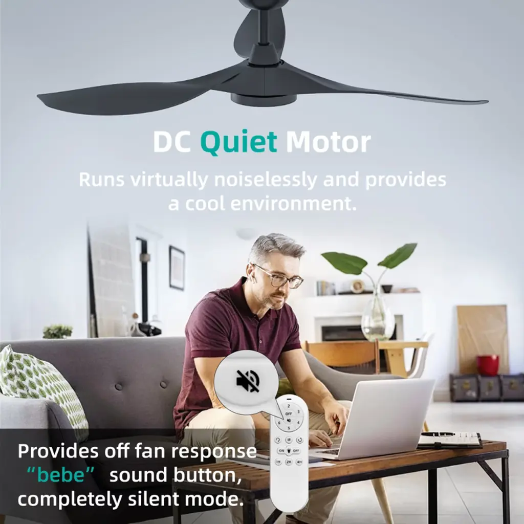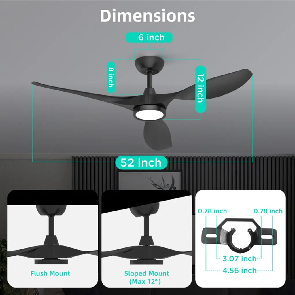 Our ceiling fans with lights and remote is equipped with a high quality DC motor which is more reliable, more efficient and quieter.This black ceiling fan with light comes with LED lighting offering 3 color temperature choices. You can easily switch between different color temperatures using the remote control.The multi-functional ceiling fan with lights remote control allows you to freely control the 6 speeds of the fan, set 1/4/8 hour timer. You can achieve all functions via the remote control. Elderly and kids at home can also use it with ease