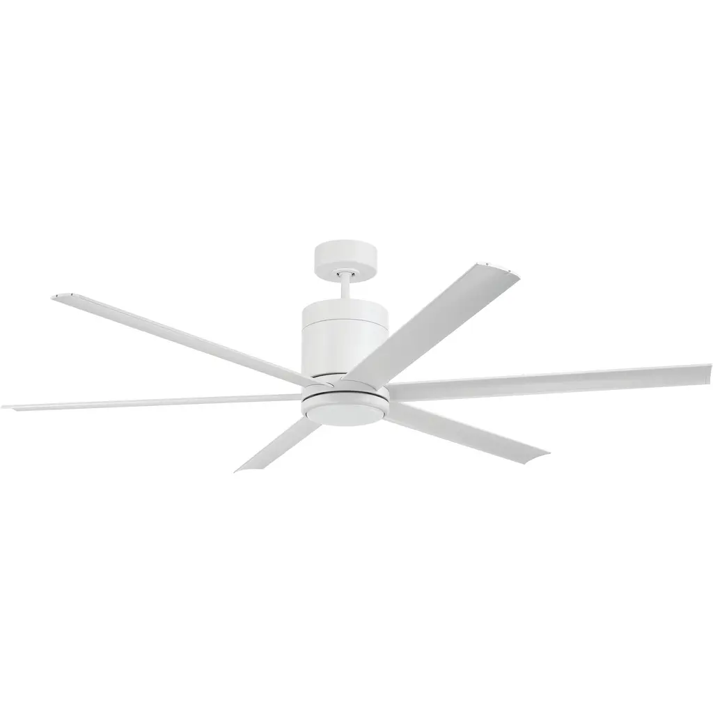 The Craftmade Tate 65" ceiling fan makes staying cool affordable. The Tate 65" ceiling fan features a universal cylinder-shaped body, custom blades, and a quiet energy-saving 6-speed, reversible DC motor controlled with the included handheld remote control. Available in your choice of two finishes - brushed polished nickel for indoor use only & the wet-rated flat black or white for indoor or outdoor use.