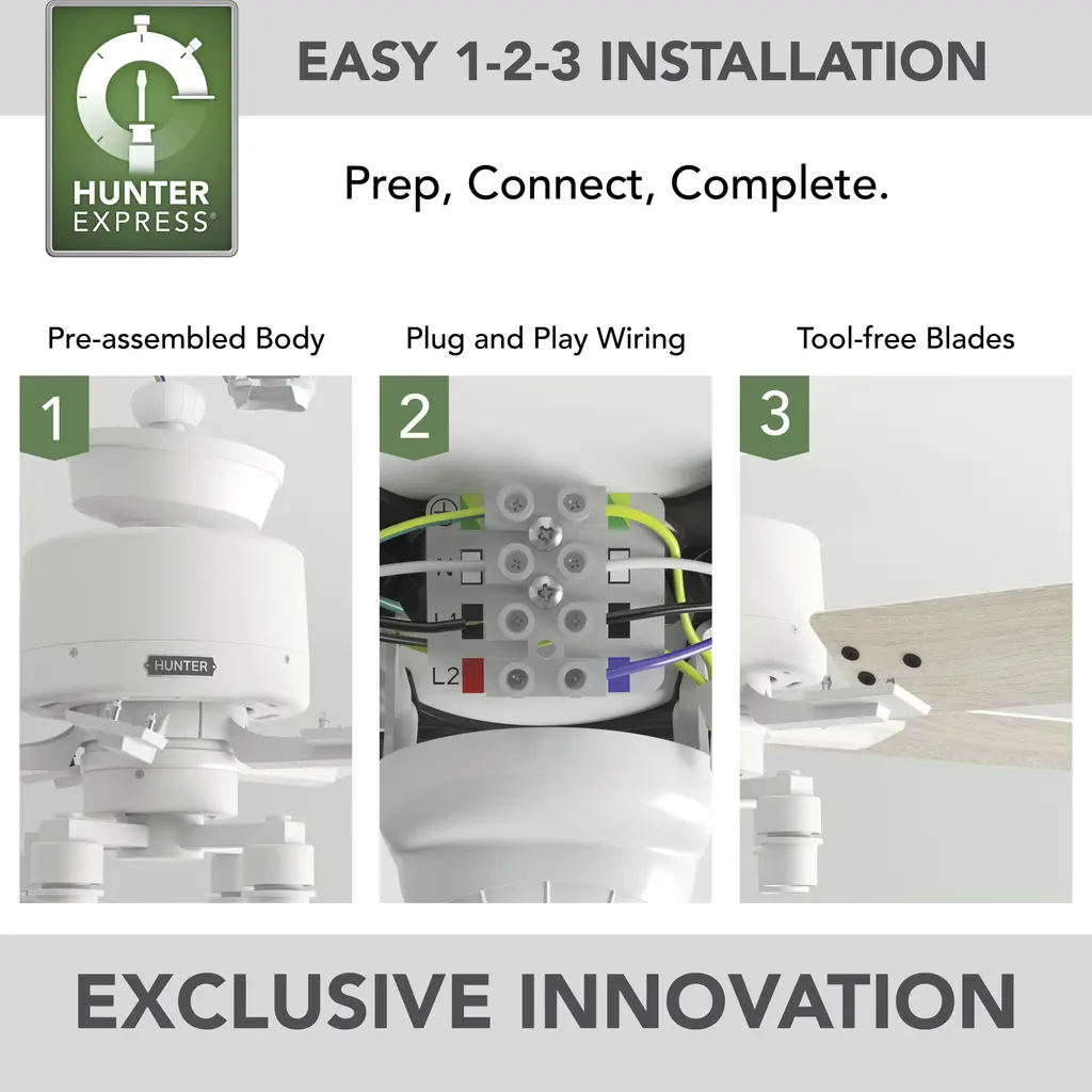 Casual with a touch of modern, the Techne ceiling fan embraces clean lines and neutral colors while fitting into a casual or modern design scheme. Living room, master bedroom, or office, it is perfect for any larger room in your home. Our HunterExpress® Easy 1-2-3 installation will make this a snap to add to your room. The Techne makes your home smart too, with its SIMPLEconnect® Wi-Fi® fan capabilities compatible with smart home devices including Apple HomeKit, Google Assistant, and Amazon Alexa.